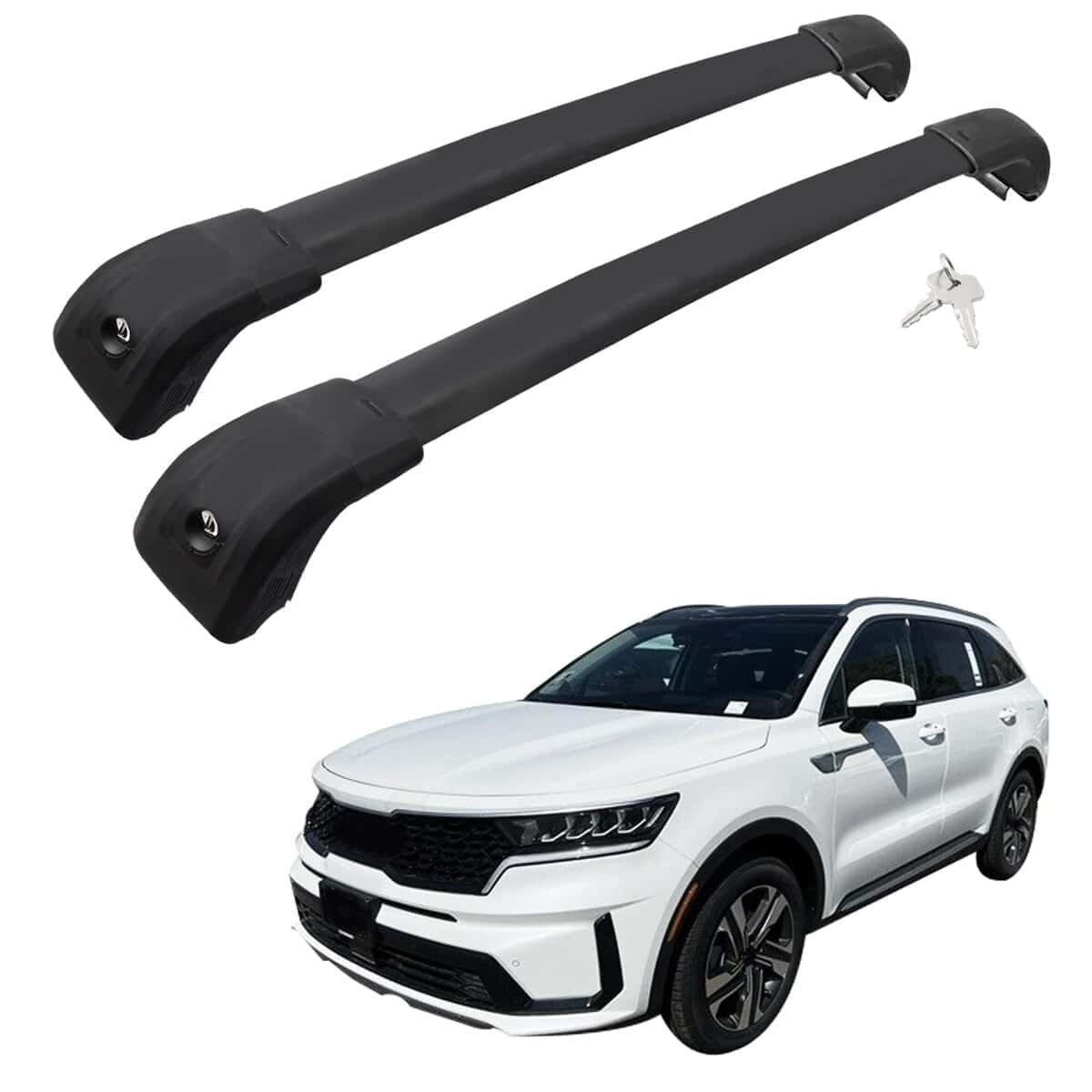 Barras transversales para el techo del automóvil compatibles con KIA Sorento y Sorento Hybrid 2021-2023 (Compatibles con rieles laterales empotrados), Barras transversales para el techo de aluminio con cerradura para kayak, bicicleta, portaequipajes de techo, cesta de equipaje.