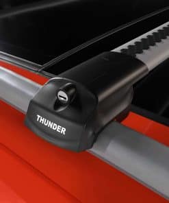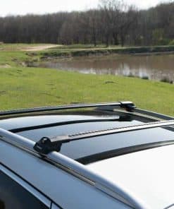 Barras transversales compatibles con rieles de techo elevados. Fabricadas en perfil de aluminio anodizado. Diseño especial de goma en el perfil de aluminio para evitar que los objetos transportados se muevan. Las piezas de plástico están hechas de plástico original reforzado con un 30% de fibra de vidrio. Los accesorios de montaje están recubiertos para evitar la oxidación. Las piezas de conexión tienen un recubrimiento sellado para evitar daños en la superficie del vehículo. Adecuadas para colocar portaesquís, portabicicletas, cesta de equipaje y cesta de carga. Diseñadas con una estructura aerodinámica para minimizar la resistencia al viento y el ruido. Se pueden extender telescópicamente hasta 8 cm. Viene con garantía de 5 años para repuestos gratis. Contenido del paquete: 2 perfiles de aluminio, 4 abrazaderas de montaje, 1 llave Allen M5, 1 guía de montaje, 1 llavero Thunder (regalo). Capacidad de carga máxima: 225 libras.