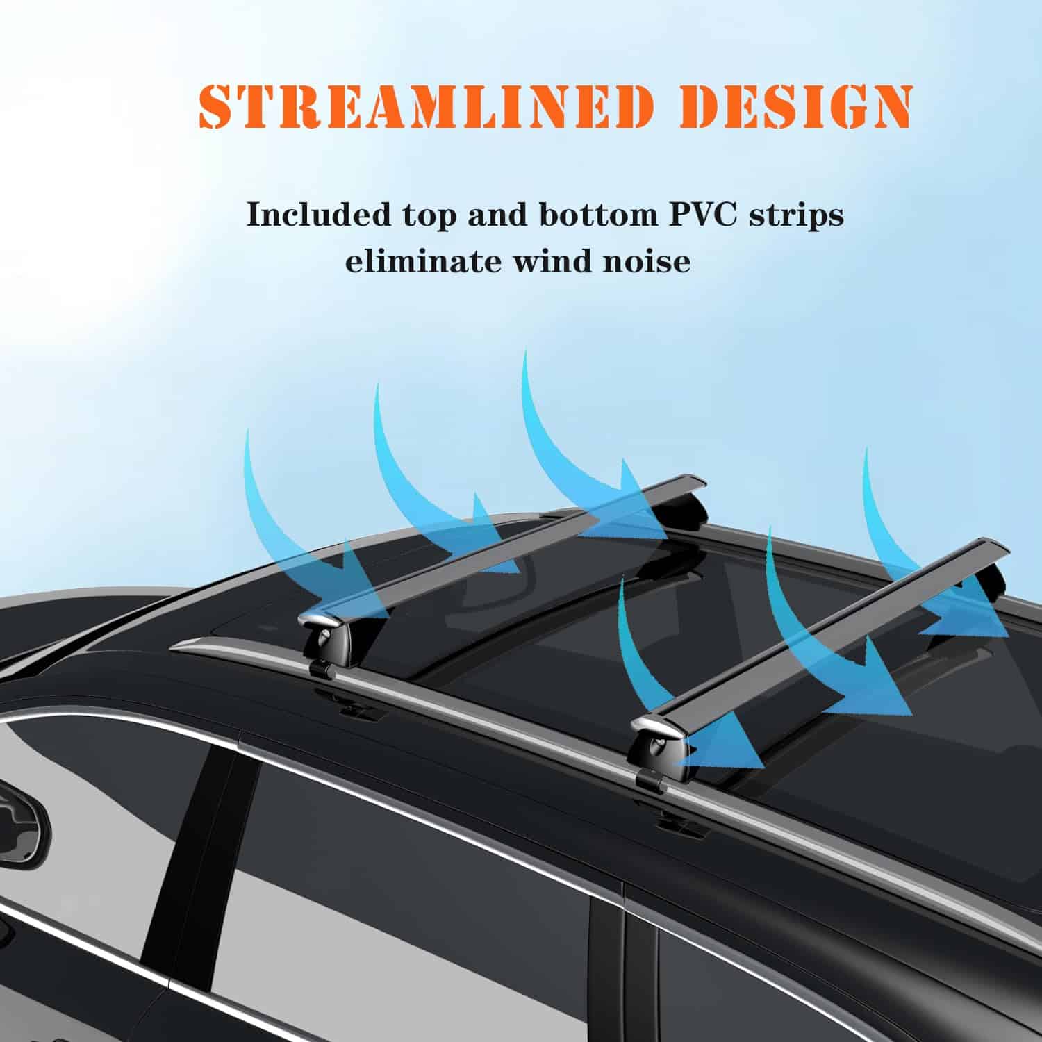 3. Diseño Único de Forma Aerodinámica – Nuestras barras transversales para el techo adoptaron un diseño de cuerpo principal aerodinámico, combinado con tiras de PVC, pueden reducir en gran medida el ruido del viento y la resistencia al viento durante el proceso de conducción del vehículo.