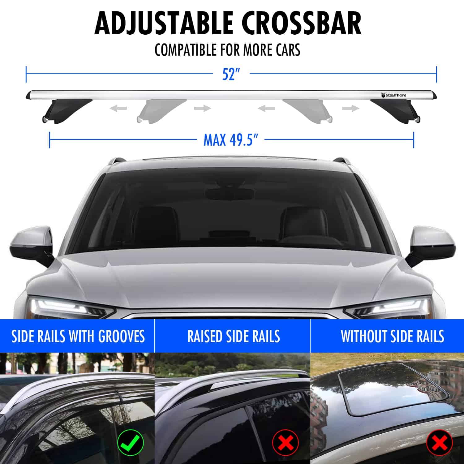 5. EXPERIENCIA GARANTIZADA DE 5 ESTRELLAS: Estas barras transversales para rack de techo son una elección perfecta para tus actividades al aire libre. Lo que obtienes no es solo los productos profesionales de alta calidad de Stay There, sino también el servicio postventa que te hace sentir tranquilo. Te proporcionaremos servicios profesionales las 24 horas. Si tienes alguna pregunta, ¡no dudes en contactarnos.