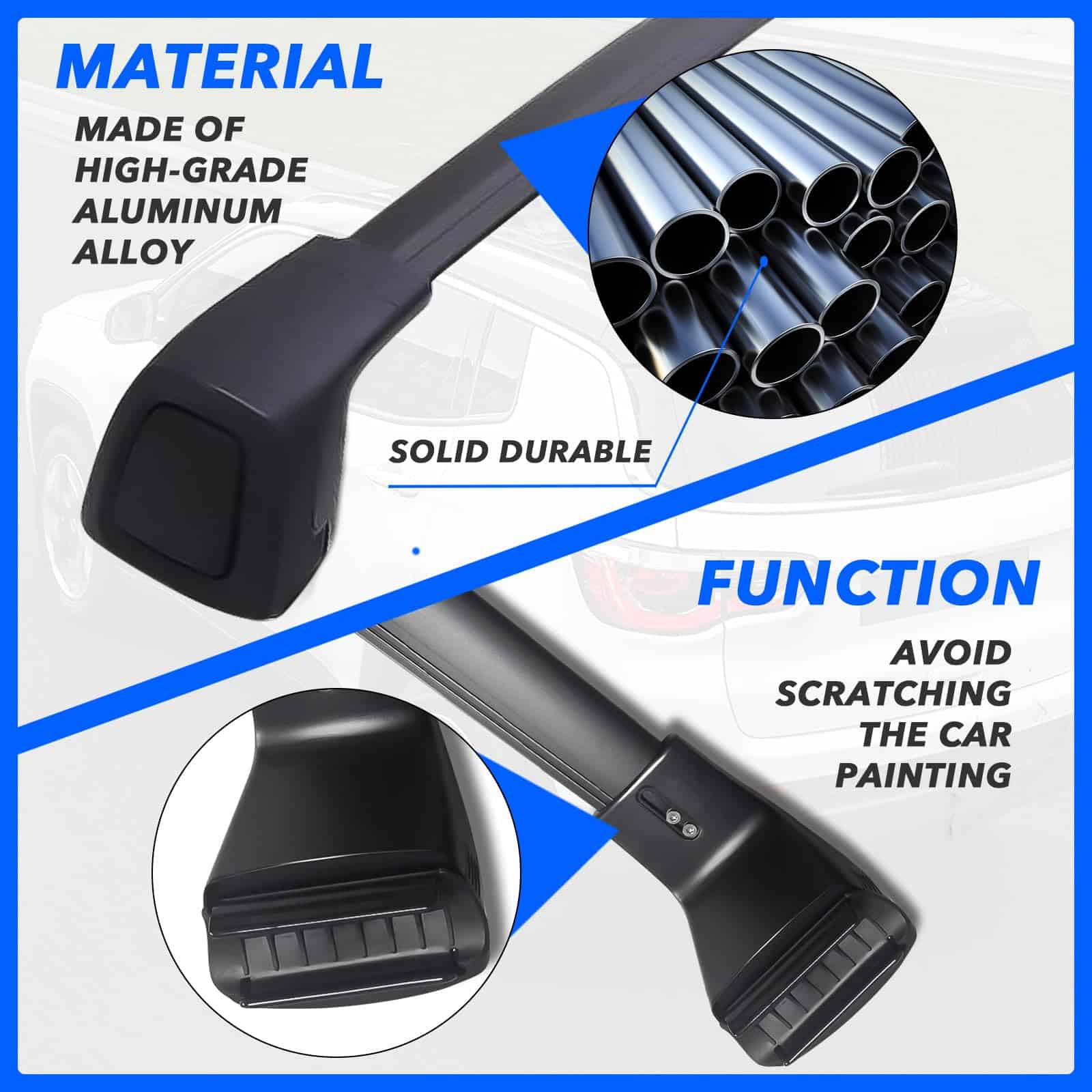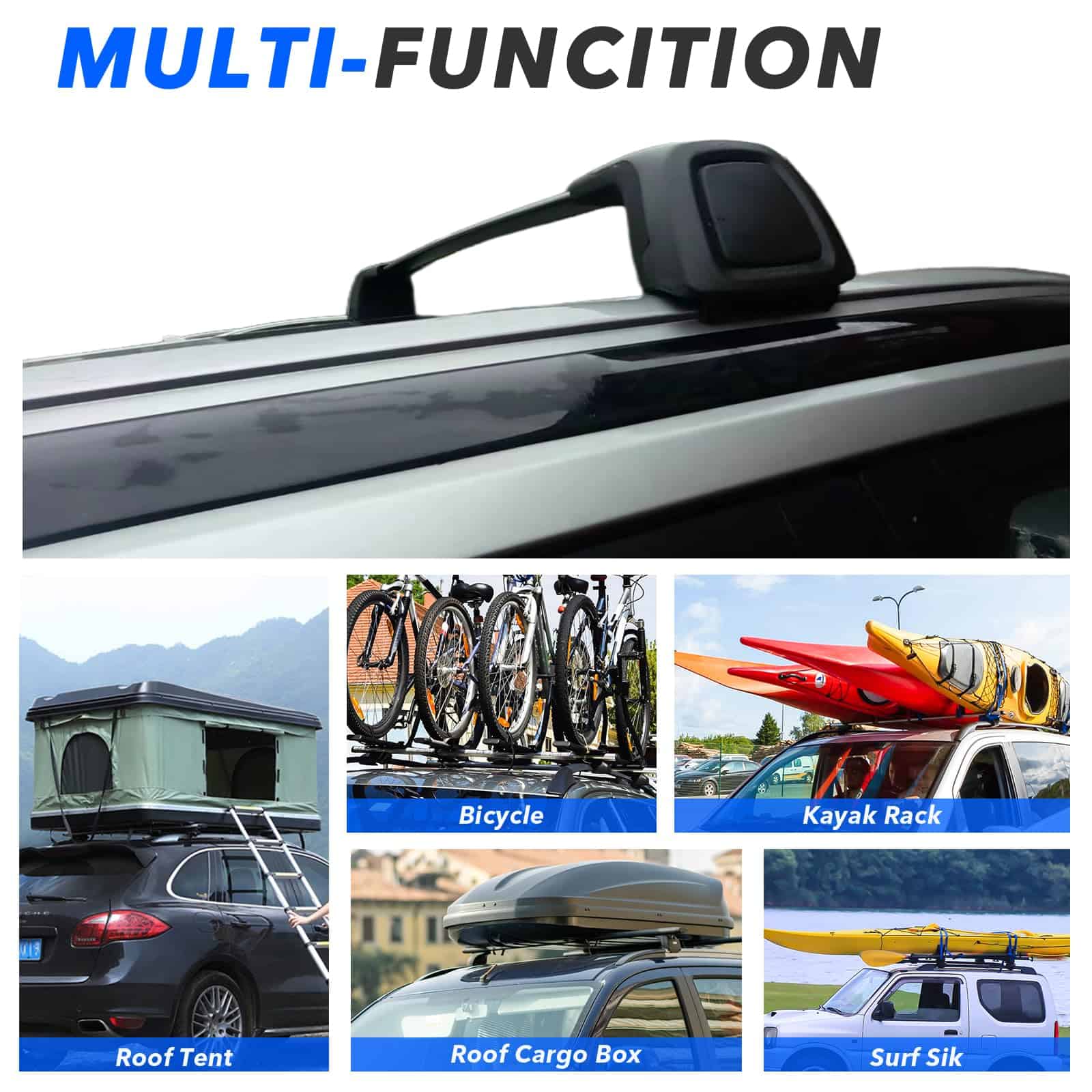 1. Ajuste: Compatible con Kia Sorento & Sorento Hibrido 2021-2025 (Solo para modelos con rieles laterales planos). 2. Material: Hechas de aleación de aluminio de alta calidad. 3. Capacidad de carga: Hasta 150lbs de manera uniformemente distribuida. 4. Fácil instalación y desmontaje con guía de instalación. 5. Aplicación: Puede transportar marco de bicicleta, marco de equipaje de techo, maletero de techo, tela impermeable, marco de canoa, marco de tabla de snowboard y otros equipos turísticos.