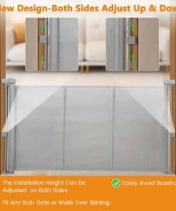 La seguridad es primordial cuando se trata de nuestros productos. El material de malla suave utilizado en esta barrera minimiza el riesgo de lesiones, convirtiéndola en una elección segura para hogares con niños pequeños. Sin barra inferior, no hay peligros de tropiezo, asegurando un entorno libre de peligros para tu familia.