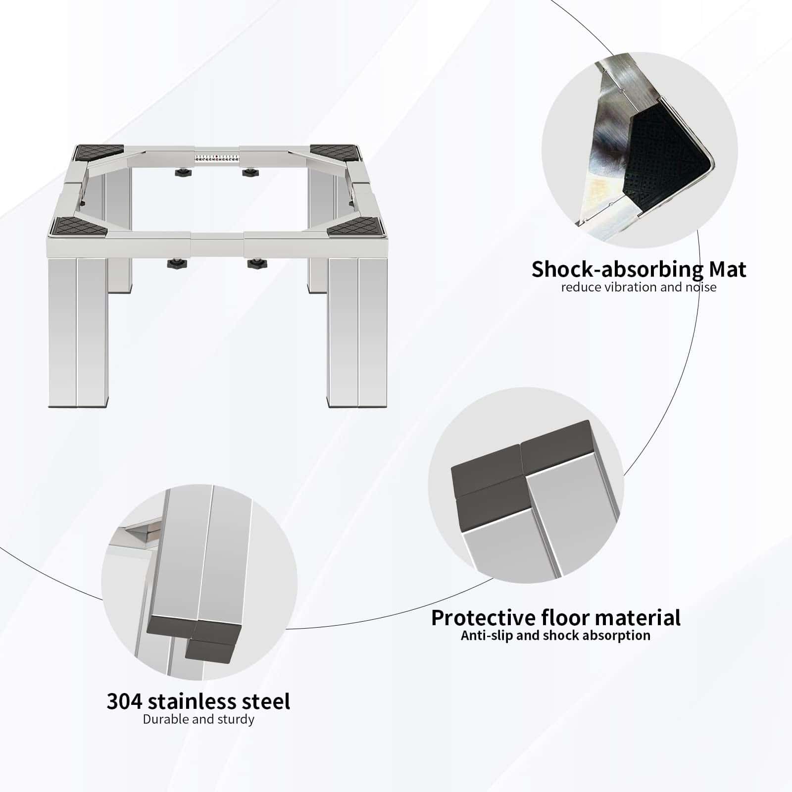 5. Amplio rango de aplicaciones, esta base ajustable para lavadora puede ayudarte a elevar y fijar la altura de electrodomésticos pesados como mini neveras y lavadoras en casa y en dormitorios.