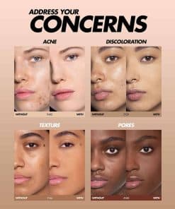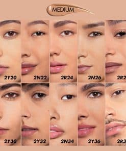 Base de maquillaje de cobertura media a completa y larga duración de 24 horas que difumina imperfecciones y ofrece un acabado mate natural que parece piel. Se puede construir a tu nivel de cobertura deseado y se aplica fácilmente sin sentirse o lucir pastoso.