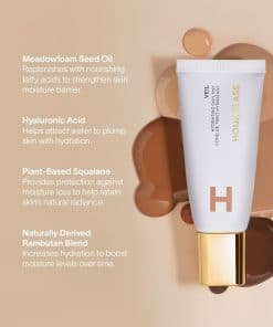 Base de maquillaje hidratante Veil Hourglass en tono 5. Este producto proporciona un impulso instantáneo a los niveles de humedad de la piel en un 52%, logrando un brillo radiante. Además, rellena y suaviza visiblemente la piel, ofreciendo una cobertura ligera y cómoda que proporciona hidratación durante todo el día y un uso confortable durante todo el día. Formulado sin alcohol, GMO, parabenos ni talco. Aporta a la piel un aspecto radiante y saludable.