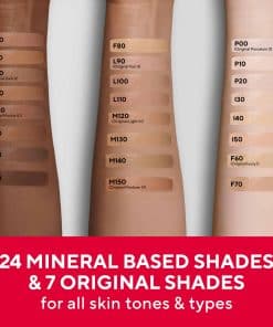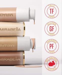 Mirabella Invincible For All HD Liquid Foundation es una base de maquillaje facial liviana, humectante y de cobertura total que se adapta a todo tipo de piel. Infundido con ácido hialurónico, Matrixyl 3000, glicerina y siliconas suavizantes, deja la piel hidratada y rica en humedad, mejorando la elasticidad y previniendo que se asiente en líneas finas. Nuestra base es limpia, sin parabenos, gluten y talco, y viene envasada en una botella sin aire para una frescura duradera. Con un acabado mate semi, esta base de maquillaje está clínicamente probada para mejorar la apariencia de líneas finas, tono de piel y poros. Además, ofrece beneficios anti-edad para un cutis natural y sin imperfecciones que dura todo el día. Adecuado para todos los tonos y tipos de piel, con una gama de 24 tonos universales, Mirabella Invincible For All Foundation es seguro para pieles normales, grasas, secas, mixtas y propensas al acné. Consigue un ajuste de color ideal para todos los tonos de piel y logra un acabado natural y sin costuras con nuestra base mineral de alta calidad.