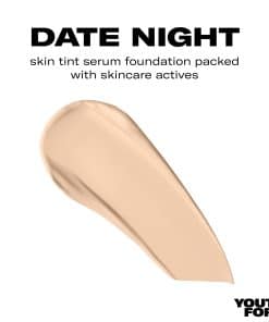 La base de maquillaje Youthforia Date Night es un suero líquido de cobertura ligera a media, formulado con un 68% de ingredientes activos para el cuidado de la piel, que se funden en la piel para un acabado de piel de vidrio, controlando el exceso de sebo para una duración prolongada. Nuestra fórmula liviana se mezcla fácilmente y se puede construir para obtener la cobertura deseada. Los ingredientes lujosos texturizantes evitan un aspecto pastoso, ayudan a mantener una barrera de cuidado de la piel saludable y permiten que la piel respire. Prepárate la cara con el Primer Pregame de Youthforia. Para una cobertura media, usa 1-2 aplicaciones en el dorso de tu mano y luego aplica con un pincel. Para una cobertura ligera, usa 1/2 – 1 aplicación en el dorso de tu mano y luego aplica con una esponja de maquillaje o con los dedos. Formulada con complejo de taninos para reducir el tamaño de los poros y controlar el sebo. Infundida con ácido hialurónico y centella asiática para hidratación y adenosina para beneficios antienvejecimiento y suavizantes de la piel. Apta para todo tipo de piel. Libre de siliconas y fragancias. Youthforia es una marca de maquillaje limpio y sostenible que hace maquillaje formulado para ser tan bueno para tu piel que puedes dormir con él. Hecho con ingredientes de origen vegetal.