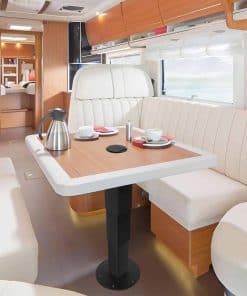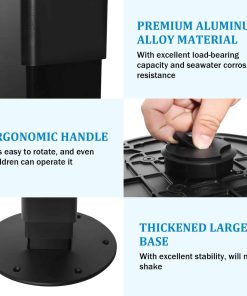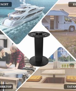 Equipado con resortes de gas para ayudar a subir/bajar la mesa. Es más fácil levantar la mesa cuando está llena de artículos y no aterrizará repentinamente al bajar, facilitando tu vida. La Base de Pedestal de Mesa para RV tiene un amplio rango de ajuste vertical (13-28.7 pulgadas). El mango en la parte superior te permite ajustar la altura a tu posición deseada. Fabricado en aleación de aluminio de alta calidad + ABS, ofreciendo fabricación y acabado de calidad. No se dañará incluso en el entorno adverso del mar. Soporta una capacidad de carga de hasta 180 libras. Ampliamente utilizado en yates marinos, campistas, RVs, etc., y también se puede utilizar en estudios, balcones, salas de estar, tatamis o soportes para cama. Se recomienda la instalación a través de agujeros de perforación (2.7 pulgadas de diámetro) en el escritorio. Si no eres un profesional, te recomendamos buscar la ayuda de un ingeniero profesional para garantizar la mejor experiencia de compra. El grosor de la mesa más adecuado es de 1.2 pulgadas. Si es menor a este tamaño, puedes colocar algo debajo de la mesa para elevarla