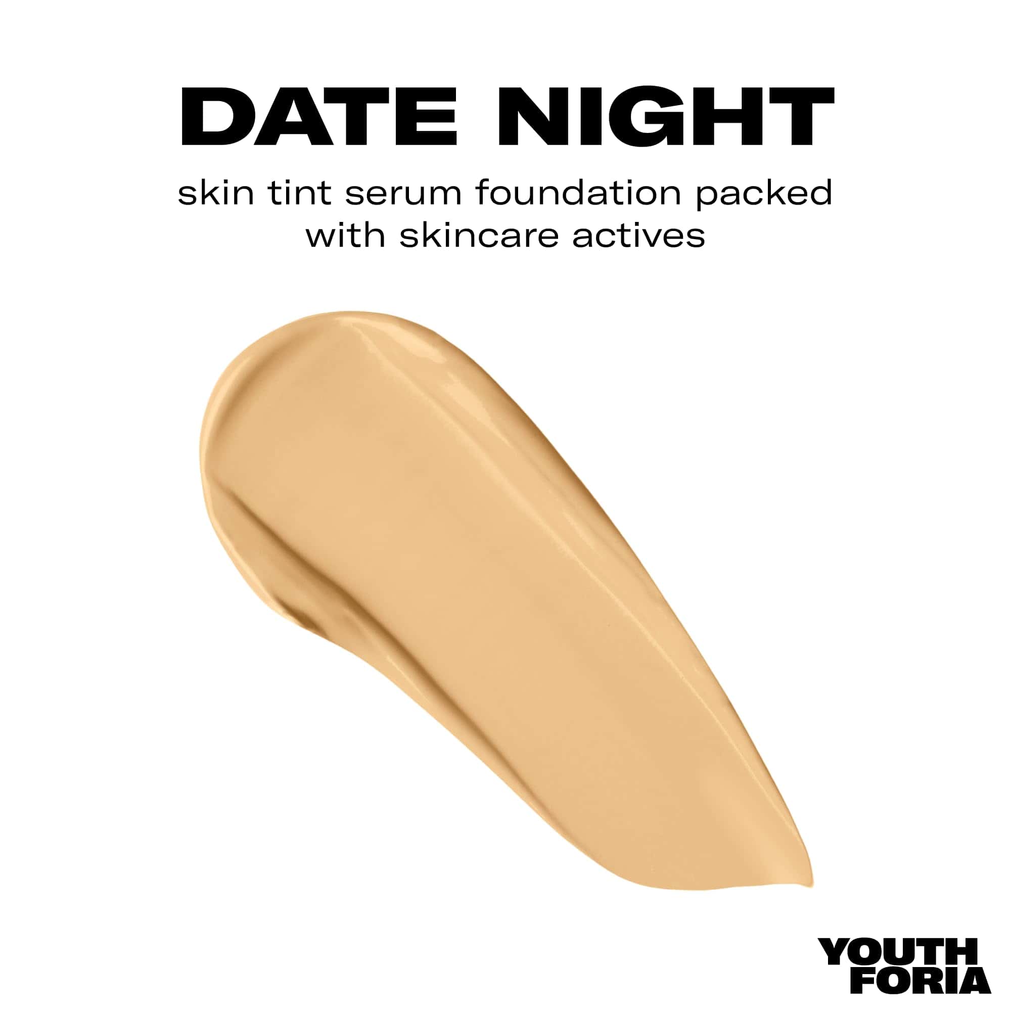 1. BASE PARA UNA PIEL IMPECABLE: La base de suero Date Night de Youthforia es una base líquida de suero de cobertura ligera a media, formulada con un 68% de ingredientes activos para el cuidado de la piel, que se funden en la piel para un acabado de piel de vidrio, mientras controla el sebo para una duración prolongada.