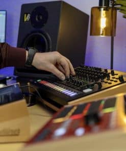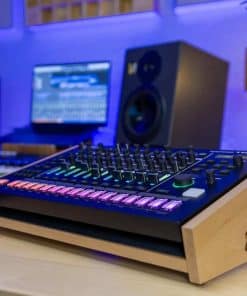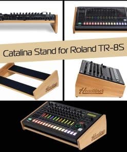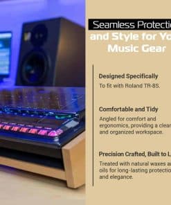 Base de madera genuina compatible con Roland TR-8S. Inclinada para mayor comodidad y ergonomía, proporcionando un espacio de trabajo limpio y organizado. Cada base es única gracias a sus patrones de vetas de madera. Almohadillas de goma antideslizantes mantienen los dispositivos firmemente en su lugar. Compatible con las cubiertas Decksaver.