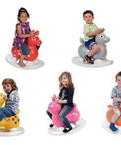 Base mecedora de plástico resistente para aplicar a los artículos Rody, Gyffy y Raffy. Al insertar los pies en las aberturas especiales, convierte a nuestros amigos en un lindo y tranquilo juguete mecedor.