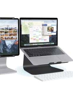 La mStand360, una base para laptop con base giratoria, para profesionales que requieren una forma elegante de compartir la pantalla mientras disfrutan de estabilidad. El cuerpo de la mStand360 es una sola pieza de aluminio con un acabado de alta calidad de chorro de arena y anodizado en plata que combina con las notebooks de Apple. Su base giratoria de aluminio tiene un perfil súper delgado de solo 0.1 pulgada (0.2 mm) para mantener las mismas líneas elegantes que la mStand original. La mStand360 eleva la pantalla del portátil al nivel de los ojos para una mejor postura y vista. La base también es ideal para usar con una pantalla externa, elevando la pantalla del portátil a la misma altura para una visualización más cómoda y al mismo tiempo liberando espacio en el escritorio. El diseño inclinado acerca la pantalla y mejora el flujo de aire alrededor del portátil. El diseño de una sola pieza de aluminio proporciona una sólida estabilidad y el panel de aluminio enfría el portátil al servir como disipador de calor. La mStand360 es compatible con todas las notebooks de Apple y la mayoría de las notebooks PC con profundidades inferiores a 10.4 pulgadas. Combinada con un teclado y ratón externos, la mStand360 transforma un portátil en una elegante estación de trabajo para que los usuarios trabajen cómodamente todos los días.