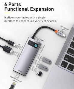 Baseus 6 en 1 USB C Hub, Adaptador de Concentrador Tipo C a