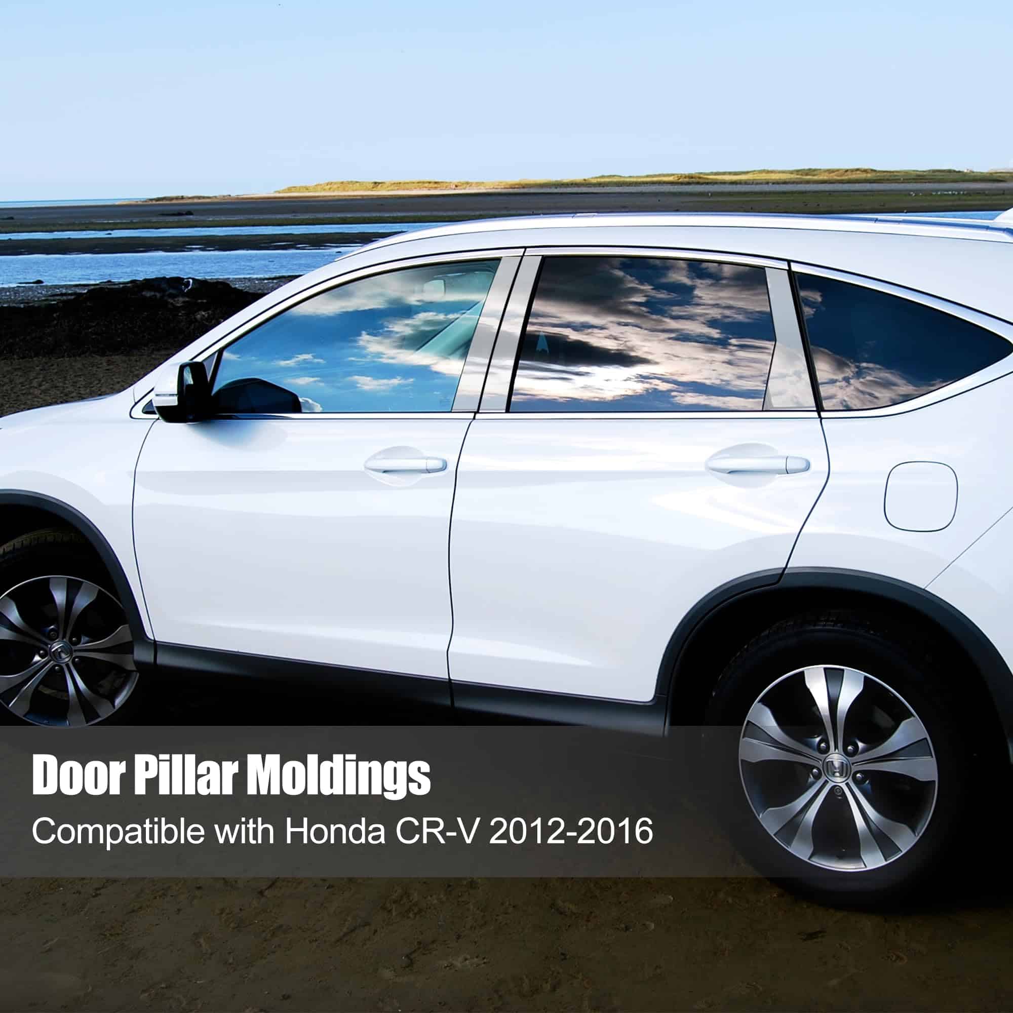 Este juego de 6 piezas de adhesivos antirrayones es compatible con Honda CR-V 2012-2016. Viene con una tira de moldura de puerta y ventana para CRV 2007-2012, fabricada con material de PVC de alta calidad que tiene una excelente resistencia al desgaste y durabilidad. La moldura tiene una película plástica transparente en la superficie que, una vez retirada, da como resultado un pilar de ventana que brilla como un espejo, mejorando la apariencia de su automóvil.