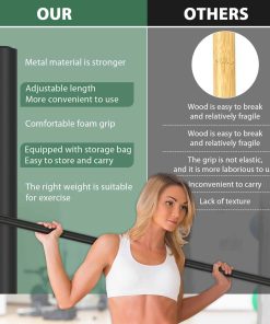 El bastón de ejercicio puede obtener barras de estiramiento de tamaño 30 pulgadas, 45 pulgadas y 60 pulgadas ensamblando cuatro secciones de varillas de acero por sí mismo para satisfacer diferentes necesidades de uso. El bastón de estiramiento ajustable es no solo una herramienta auxiliar de yoga, sino también un bastón de postura, una barra de equilibrio, un bastón de pilates y un bastón de terapia de rehabilitación para ayudar a ejercitar los músculos del cuerpo superior e inferior y el núcleo. El bastón de estiramiento se compone de cuatro postes de acero diseñados de forma independiente y está equipado con una bolsa de almacenamiento de nylon cifrado 210D, que es fácil de desmontar y guardar, fácil de transportar y te acompaña en cada momento de fitness. El poste de ejercicio aumenta la actividad, la flexibilidad y la movilidad a través de actividades de estiramiento, fortalece el equilibrio y la fuerza del núcleo.