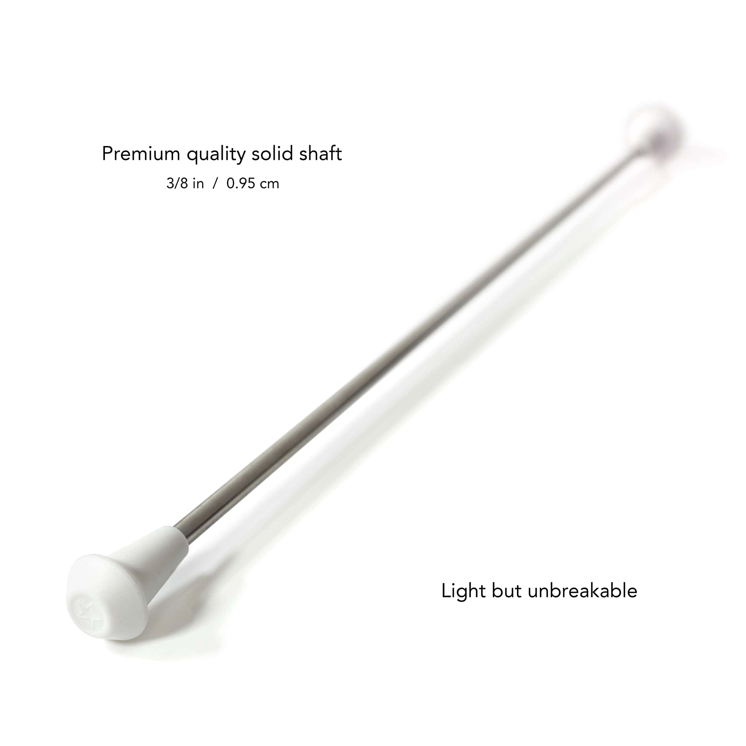 Nuestra varilla de bastón giratorio está fabricada con acero inoxidable de 3/8 pulgadas de grosor, no hueco. Este diseño de calidad premium garantiza que tu bastón no solo tenga una sensación ligera, sino que también sea irrompible, permitiéndote bailar y girar con tu bastón con facilidad.