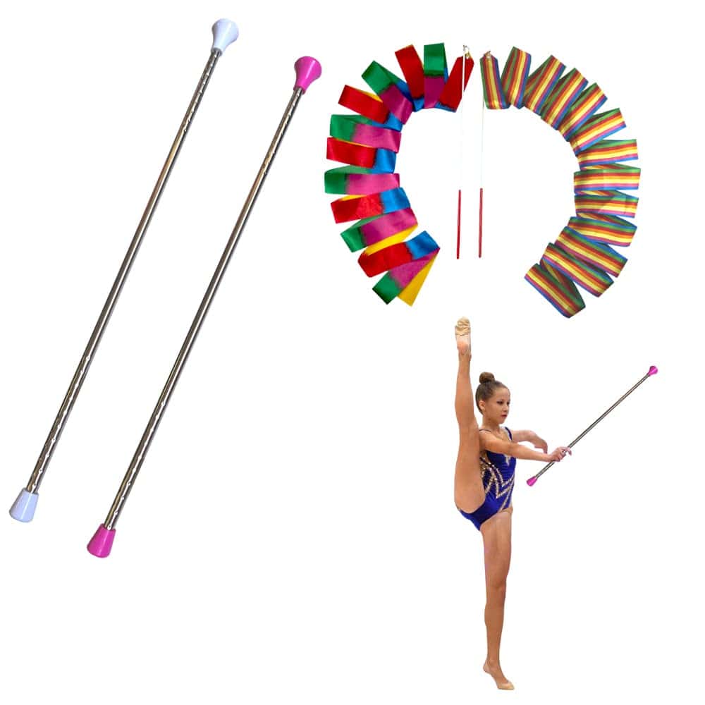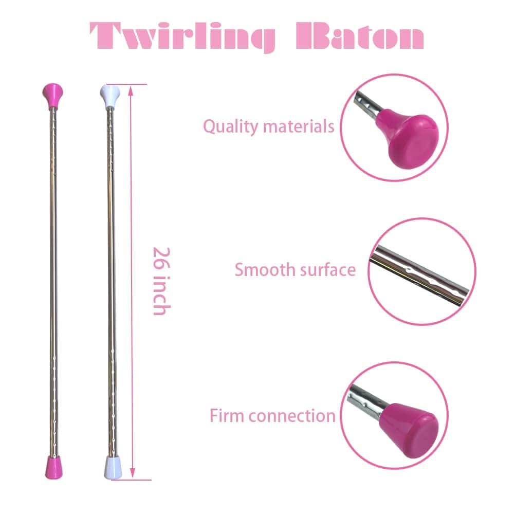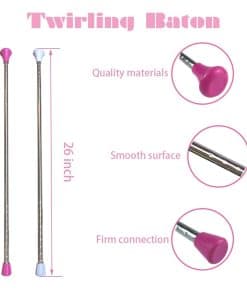 El Bastón Giratorio para Marching Band, Spinning Dance, de Metal para Gimnasia, Palo de Desfile para Niños en Majorette tiene un eje de 26 pulgadas hecho de metal liso con un extremo de plástico resistente como un bastón tradicional, que es ligero y excelente para mantener la rotación y el equilibrio. Perfecto para ejercitar los dedos, mejorar la coordinación ojos-manos y demostrar fuerza, flexibilidad y condición física. Ideal para liderar en marchas, bailes artísticos, fiestas infantiles, entrenamiento físico, circo, etc. Un regalo maravilloso para niños o equipos de animadoras. Adecuado para niños a partir de 1 año en adelante, principiantes, jóvenes twirlers y cualquier persona que ame girar. Incluye 2 bastones giratorios y 2 cintas de baile para gimnasia o juegos divertidos para niños.