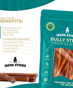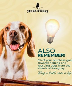 ¿Buscas una golosina para perros totalmente natural para tu amigo peludo? Nuestros Bastones de Jagua de 6 pulgadas están hechos de carne de ternera premium totalmente natural, y son un excelente chicle dental para todas las edades y razas de perros. Te encantarán nuestros paquetes de 20 unidades todo naturales, y a tu perro le encantará el sabor. Los bastones de Jagua son unos de los mejores chicles dentales para perros. Masticar regularmente estos bastones de masticar dentales ayuda a mantener la higiene dental al reducir la acumulación de placa y sarro, lo que lleva a dientes más fuertes y encías más saludables para tu perro. Nuestros bastones están hechos de carne fresca de un solo ingrediente, y nunca usamos conservantes. ¡Prueba nuestros bastones de masticar hoy! Los bastones de Jagua están seleccionados a mano y empaquetados en los EE. UU. Entendemos que solo quieres lo mejor cuando se trata de cuidar a tu miembro de la familia de cuatro patas. Es por eso que en Jagua trabajamos solo con materia prima de ternera premium bajo estrictos estándares de control de calidad. No somos intermediarios y no obtenemos nuestros productos de diferentes proveedores. La planta de fabricación es propiedad y está operada por Jagua. Todo Natural. Sin conservantes. Libre de químicos. Libre de hormonas. Libre de granos. Calidad Premium. Apto para perros de todas las edades. Promueve dientes y encías saludables. 100% Natural. Totalmente Digestible. Análisis garantizado: Proteína cruda: 80% Humedad (máx): 12% Fibra cruda: 1% Grasa cruda: 1% ¡Compra una golosina, salva una vida! ¡El 5% de tu compra va hacia ayudar a rescatar perros de las calles en Paraguay. ¡Desata el sabor de la naturaleza!