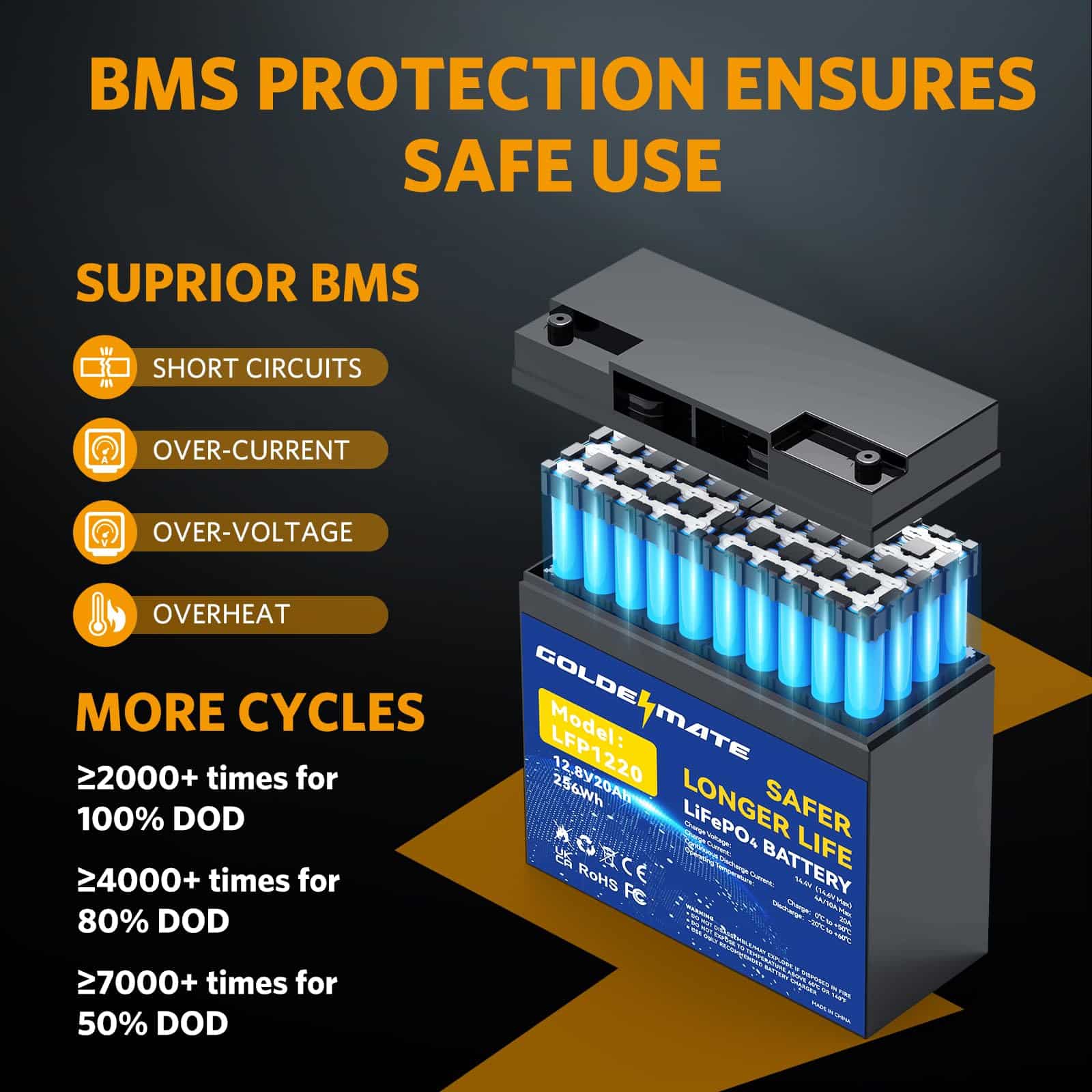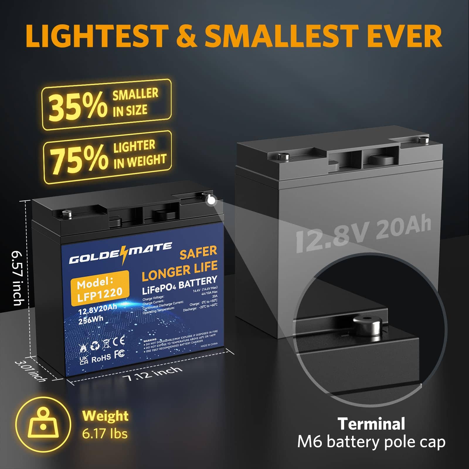 Batería de ciclo profundo de litio LiFePO4 GOLDENMATE 12V