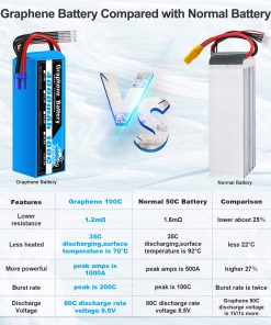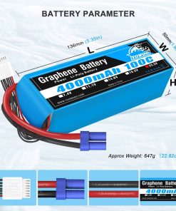 Acerca de la batería de Grafito YOWOO: Emergiendo de la oscuridad está una nueva generación en rendimiento premium. Los packs de baterías de grafeno han establecido el estándar en rendimiento, confiabilidad e innovación. Nueva tecnología de baterías de grafeno, mejor rendimiento que las baterías lipo tradicionales. Las baterías de grafeno YOWOO son sus opciones ideales para el hobby de automóviles RC. Ventajas sobre las baterías lipo tradicionales: Densidad de potencia: 0.15-0.17kw/kg (5Ah-16Ah). Densidad de potencia: 0.13-0.15kw/kg (1Ah-4.9Ah). Voltaje de pack alto estable durante la duración del uso. Alta tasa de descarga, brindando más potencia bajo carga. La impedancia interna puede llegar tan baja como 1.2m en comparación con 1.6m de una Lipo estándar. Mejor control térmico, los packs se mantienen mucho más fríos en condiciones extremas. Mayor capacidad durante descarga pesada. Mantiene mayor capacidad del pack incluso después de cientos de ciclos. Capacidad de carga rápida, hasta 10C en algunas baterías. Vida útil del ciclo más larga (se reporta en exceso de 900 durante pruebas). Especificaciones: Nombre del artículo: Batería Lipo 22.2V 4000mAh 100C 6S Tipo de batería: Batería de grafeno Capacidad: 4000mAh Voltaje: 22.2V Celda: 6S Conector de descarga: EC5 Descarga continua: 100C Dimensiones: 136x42x49.2mm Peso: 659g Cable de silicona: 14awg Cargador sugerido: Cargador de balance Tasa de carga: 1C-10C AVISO: Por favor lea las instrucciones cuidadosamente antes de usar o cargar la batería. No sobrecargues más de 4.2V y no descargues por debajo de 3.7V. Nunca dejes la batería desatendida durante la carga. Utilice solo cargadores profesionales de baterías lipo. Qué obtienes: 1 x Batería de Grafeno 6S RC (con Conector EC5) 1 x Correa para Batería 1 x Hebilla AB 1 x Manual de Usuario
