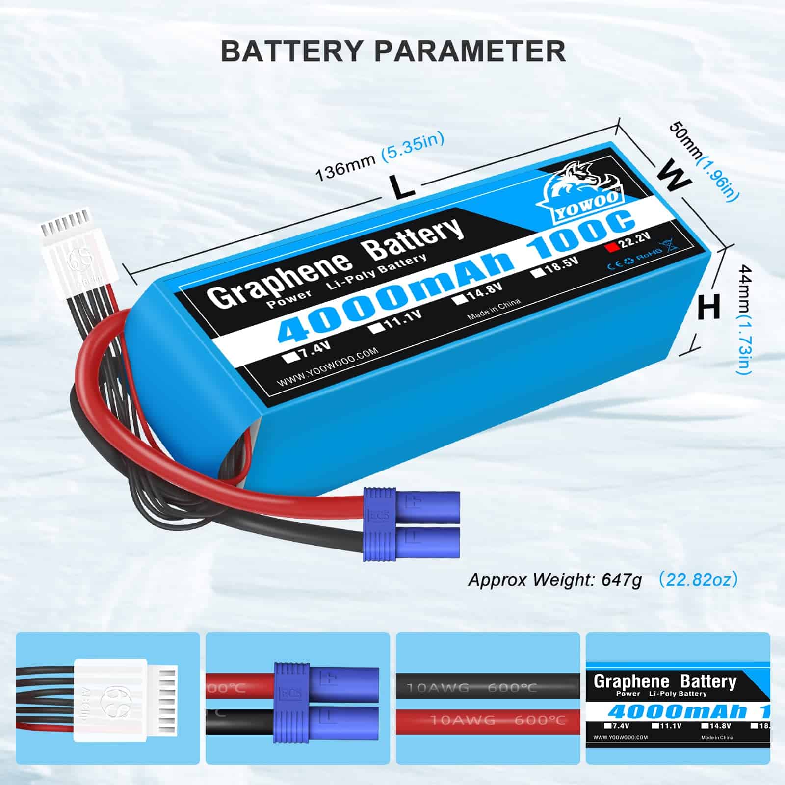 Batería de Grafeno YOWOO 22.2V 6S Lipo 4000mAh 100C con