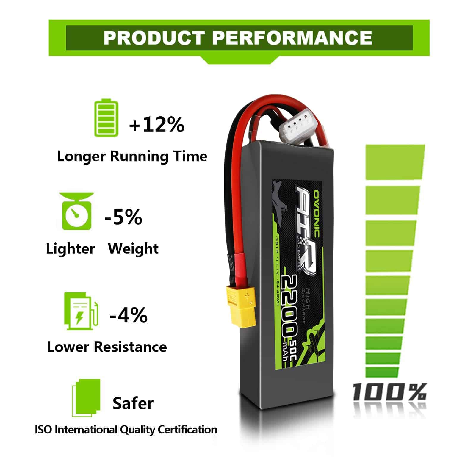 Batería de Lipo 3s OVONIC 50C 2200mAh 11.1V con Conector