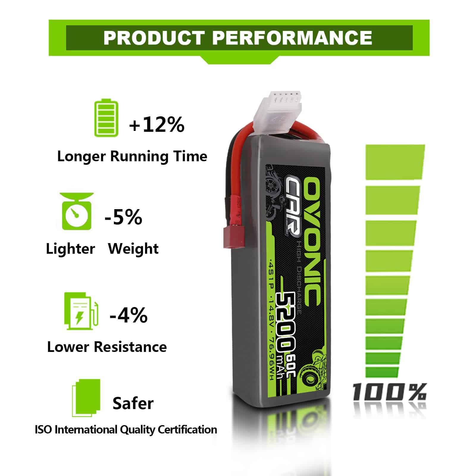 Batería de Lipo 4S OVONIC 14.8V 60C 5200mAh con Conector