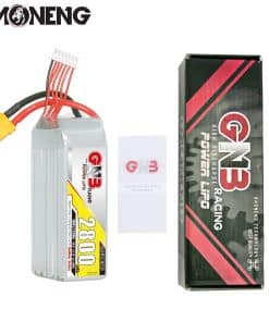 Especificaciones: – Capacidad Mínima: 2800mAh – Configuración: 6S1P/22.2V/6 celdas – Tasa de descarga continua: 100C – Tasa máxima de descarga en ráfaga: 200C – Peso Neto: 341g – Dimensiones: 110mm x 34mm x 48mm – Conector de Descarga: XT60