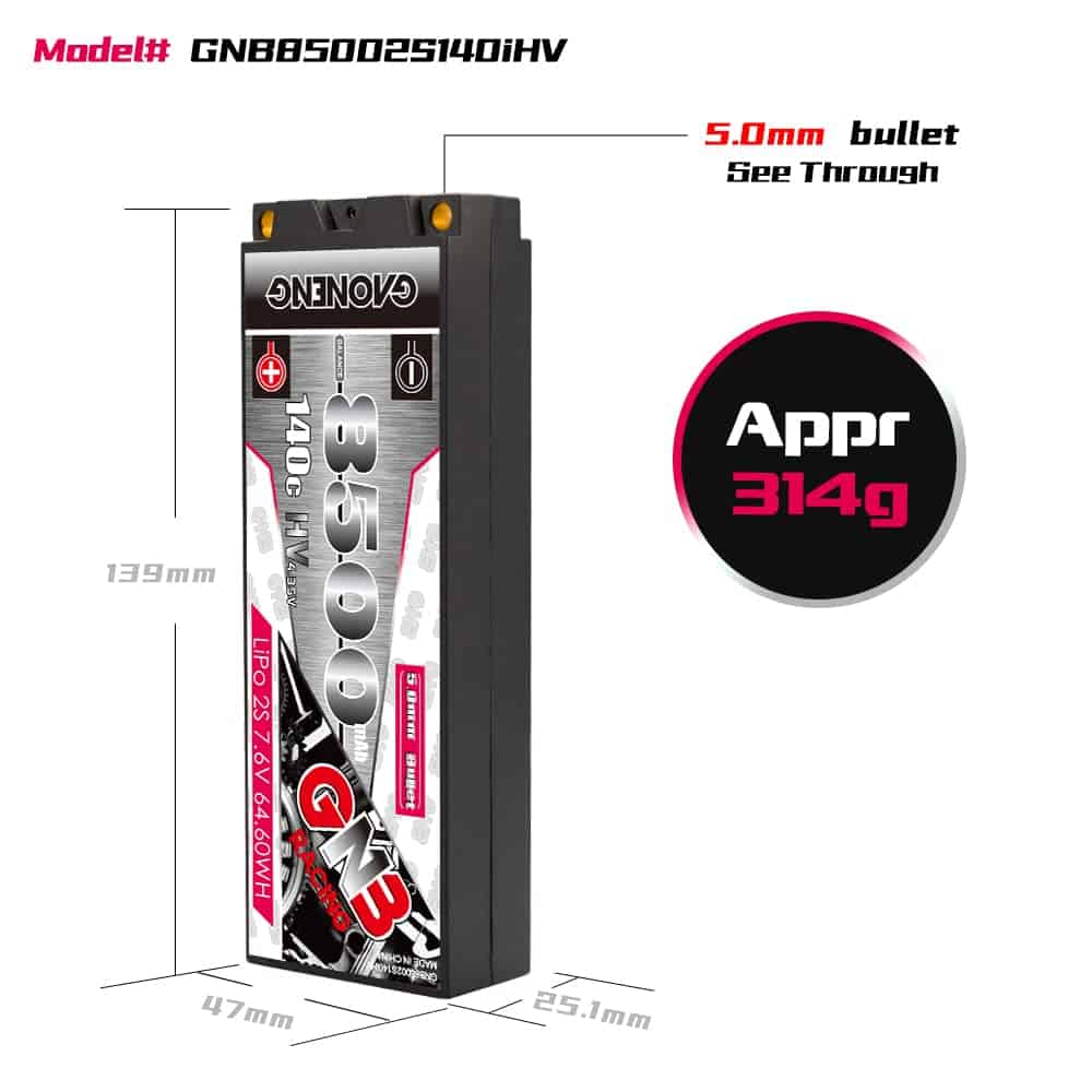 Batería de Lipo GAONENG GNB 7.4V 2S 140C 8500mAh con
