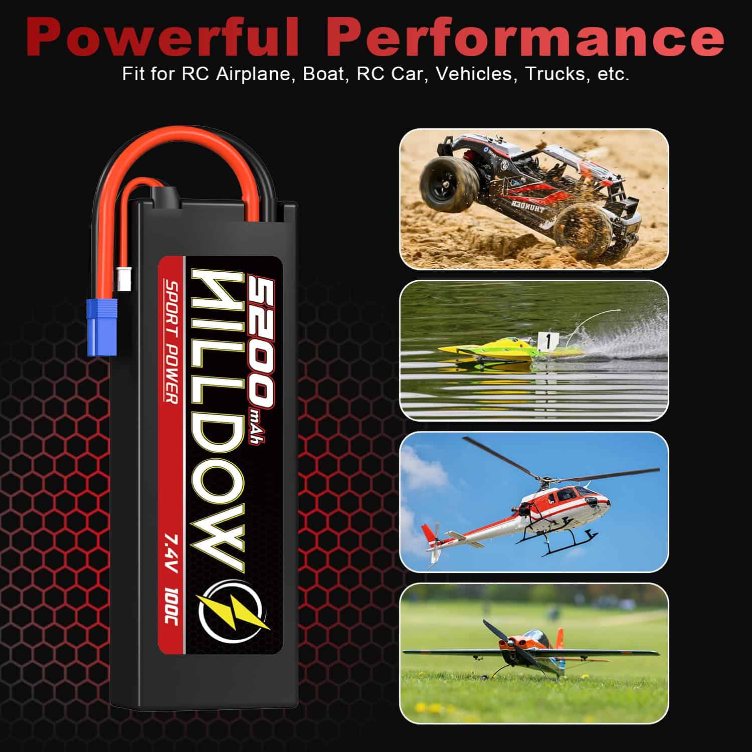 4. Aplicación – Diseñada para coches rc 1/8 y 1/10, Losi, HPI Strada XB 1/10 RTR Buggy Eléctrico, Team Associated, Axial, Bandit, versión Rustler, etc. Si el voltaje, tamaño y conector coinciden con tu coche de carreras. La batería rc Hilldow de 5200mAh se puede utilizar en la mayoría de los buggies, vehículos, coches y camiones RC.
