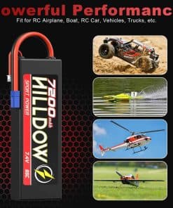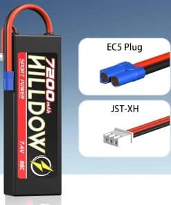 Especificación – Voltaje de la batería: 7.4V; Configuración: 2S1P; Capacidad: 7200mAh; Descarga: 85C; Enchufe: Enchufe EC5. Dimensiones y Peso – La batería rc 2s de Hilldow 7200mAh es de: 138 47 25mm/5.43 1.85 0.98inch (L A H); Peso de una sola batería: 335g/11.81oz. Alto rendimiento de la batería lipo 2S 85C con un diseño único que ofrece un rendimiento muy alto y una larga duración para tus autos RC. Aplicación – Diseñado para vehículos de camión RC 1/8 y 1/10, Emaxx, versión Bandit, Rustler, Rustler 4X4 VXL, Slash 4X4 VXL, Stampede, Bandit, Team Associated, coche RC, tanque, camión, avión RC, helicóptero RC, etc. Si tiene alguna pregunta sobre los productos que recibe o cómo usarlos, puede contactar a nuestro correo electrónico de posventa profesional para mostrar el problema del producto y el número de orden. Ofreceremos un servicio de reemplazo gratuito y soporte técnico. El correo electrónico de posventa se puede encontrar en la última página del manual del producto.