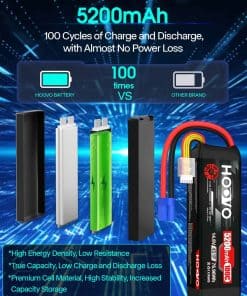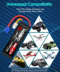 HOOVO es una marca profesional de baterías Lipo, enfocada en la investigación, desarrollo y producción de baterías de litio polímero durante décadas. Comprometidos en proporcionar las baterías más seguras y profesionales para cada consumidor. Características: – Ligero, larga vida útil, sin efecto memoria. – Batería de alta potencia y capacidad que proporciona más energía a tu modelo RC. – Alta tasa de descarga, hace que tu vehículo RC funcione de manera poderosa. Especificaciones: Marca: HOOVO Química: Polímero de litio Número de Células: 4 Voltaje(V): 14.8V Capacidad(mAh): 5200mAh Tasa de Descarga (C): 100C Tipo de Conector de Carga: JST-XH Tipo de Conector de Descarga: Conector EC5 Configuración: 4S1P Dimensiones de la Batería( 2mm): 154 x 48.5 x 32.5mm Peso( 10g): 518g. Contenido del Paquete: 2 Baterías HOOVO 2S 14.8V 5200mAh 100C de Lipo con Conector EC5. Nota: – Para la batería RC, solo si el voltaje y el conector coinciden, encajará. – No sobrecargues por encima de 4.2V ni descargues por debajo de 3.7V. – Verifica cuidadosamente la condición de la batería antes de usarla o cargarla. – Si la batería nueva no retiene una carga completa o pierde rápidamente la carga, por favor utiliza un Cargador Balanceador para cargar y reciclar varias veces primero. – Para cualquier pregunta, no dudes en contactarnos a través de la pestaña «Tus Pedidos» de tu cuenta, responderemos en un plazo de 24 horas.