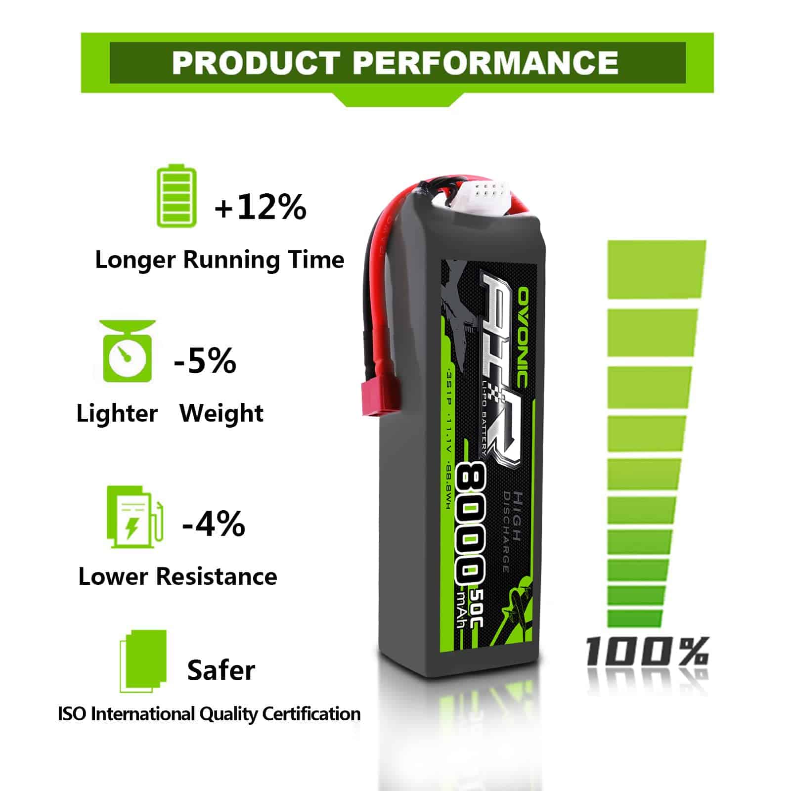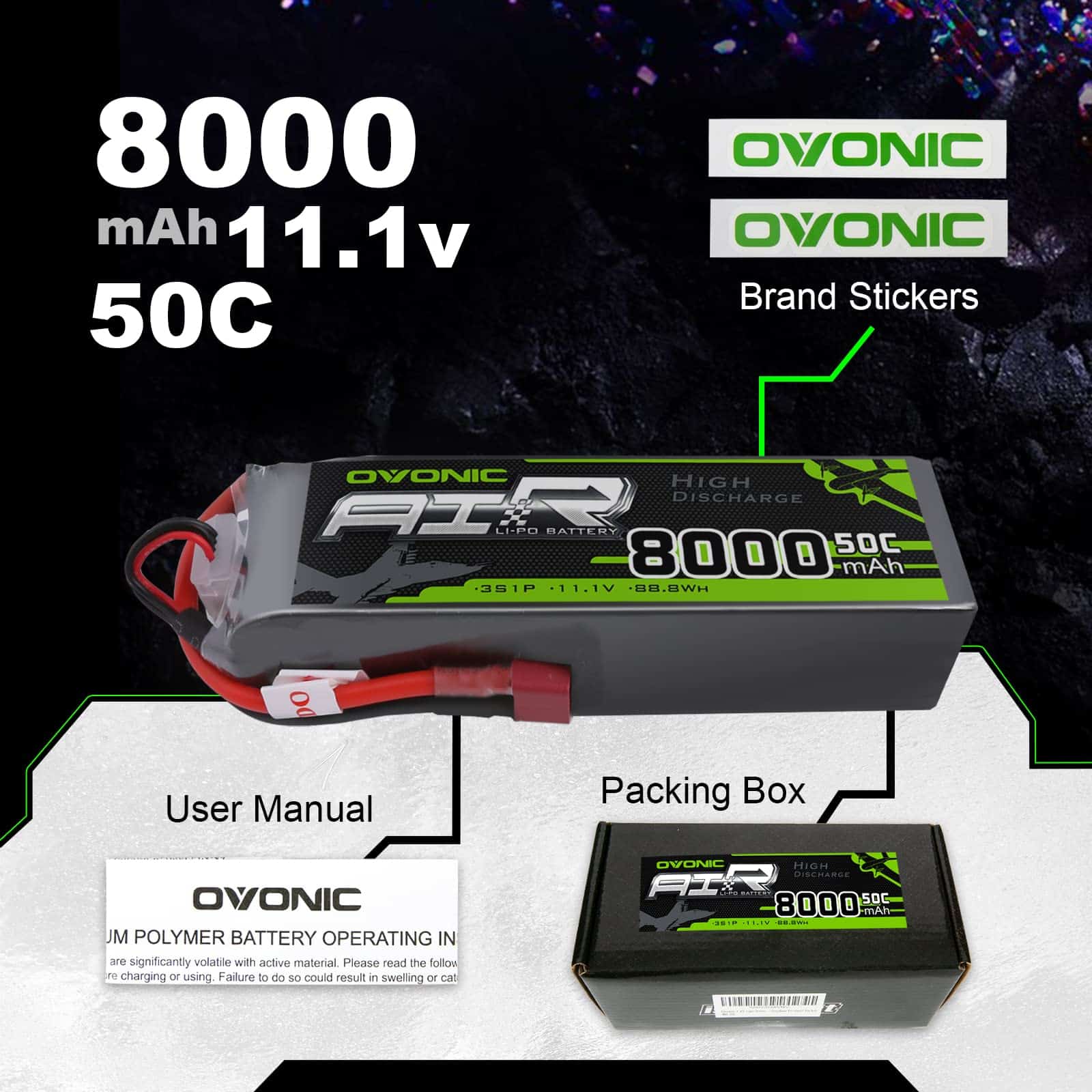Batería de Lipo OVONIC 3s 11.1V 8000mAh 50C Máximo a 80C