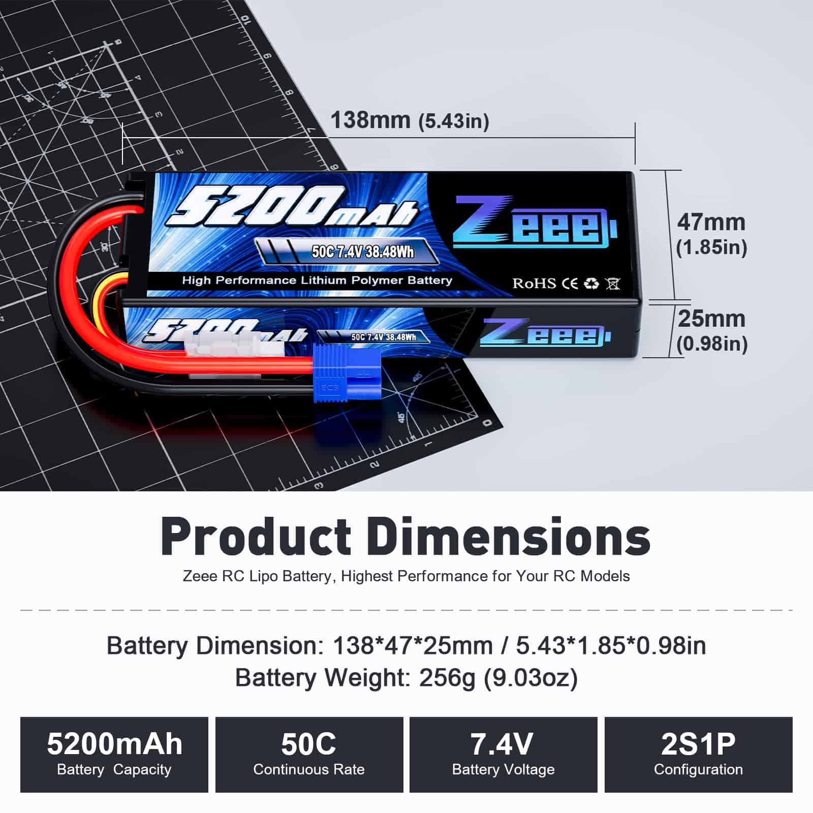 Batería de Lipo Zeee 2S 5200mAh 7.4V 50C con Estuche Rígido