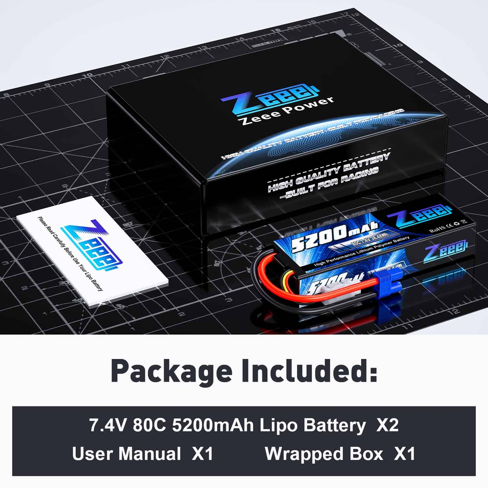 Batería de Lipo Zeee 7.4V 2S 5200mAh 80C en Estuche Rígido