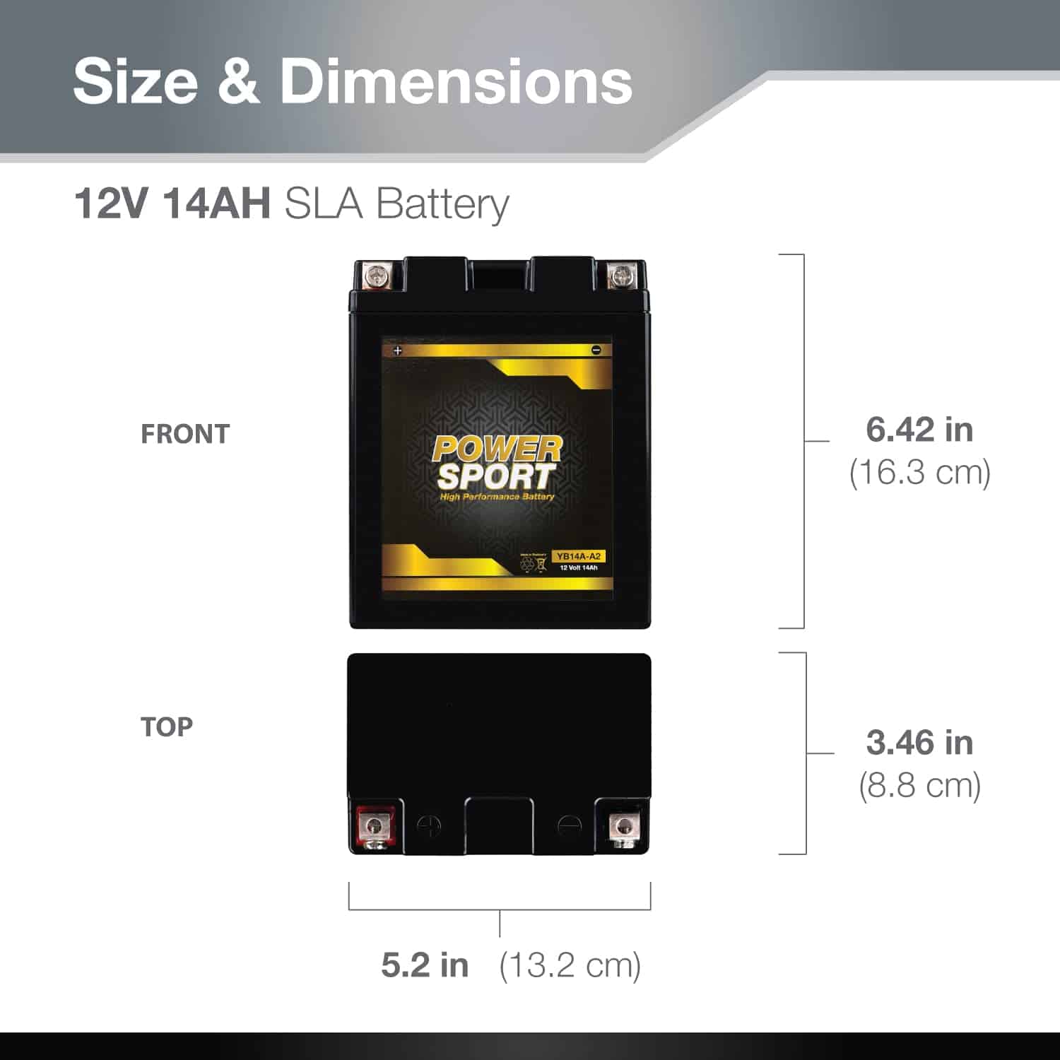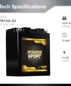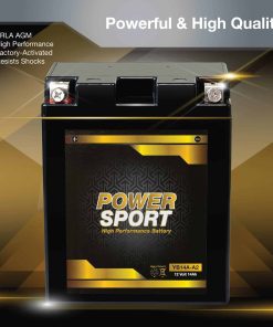 Batería de 12 voltios 14 ah, AGM sellada de 250 cca, sin mantenimiento por Renegade de alto rendimiento. Reemplazo para motocicletas, ATV y motos de nieve: Artic Cat 650/500/454/400/375/366/350/300/250cc, 2015-1997 4×4/2×4 Auto H1/V-2/Core/Alterra, LE, TBX, SE, TRV, Plus, LE/TS, MRP, FIS, ACT, VP & 440/370/340cc, 2007-1997 Bearcat/Jag/Panther/Z/Puma, l/Deluxe/ESR/ES/LX/R/2-up; Bombardier 2006-2003 Rally200; Can-Am 2007 Rally2100; Honda 2003-1997 CB750 Nighthawk; Kawasaki 400/300cc 2016-1997 KAF400/300 Mule 600/610/520/550 4×4 SE, XC & 400/350/300/250/220cc 2009-1997 KVF400/360/300/250/220 Prairie/Lakota Sport-Utility/Bayou (Can. ) 2×4/4×4; Kymco 375/350 cc 2011-2010 Maxxer/MXU375 4×4 IRS LE; Polaris 570/500/400cc 2016-2011 Ranger/RZR Crew/EPS/LE/EFI/Trail/Turbo Silver 4×4 & 570/550/450/330cc 2016-2003 Sportsman/Magnum/Trail boss EPS/SP/Hunter’s Edition/Touring/X2/EFI/BrowningLE/OrangeMadnessLE/StealthBlackLE 2×4/4×4 & 800/700/550/500/488/450/435/340/120 2010-1997 Classic/PRO X/XR/ Frontier/SKS/XC/XCR/Ultra/Sport/Strom/Super/Touring/WideTrak/TranSport/Lite (arranque eléctrico) LE/Classic/Touring/SP/SPX/Sport/GT/LX/Trail/Deluxe/XCR; Suzuki 300/250cc 2002-1997 Quad Runner/King Quad LT-F300F/LT-F4QD(X)/LT-F250(F) 4×4; Yamaha 400/350/250 2014-1997 Grizzly/Kodiak/Bruin/IRS/Wolverine/Big Bear/Bear Tracker. Equivalente a: RG14AH-BS, Yuasa YTX14AH-BS, Deka ETX15, GS GT14-BS, Sears 44004, Interstate CYTX14AH-BS, Power-Sonic PTX14AHBS-FS, Xtreme XTA14AH-BS, X2-15, BCI B14-A2, B14-B2, Bike master BTX14AH-BS, Honda 31500-958-681, 31500-958-682, 31500-MB1-672, 31500-ML5-692AH, 31500-MW3-720AH, Kawasaki 26012-0005, 26012-0006, 26012-001, 26012-0141, 26012-0142, Suzuki 33610-19B60, 33610-24500, 33610-24560, Yahama 24W-82110-G0-00, 5TE-H2100-00-00, CB1-4A200-00-00, YB1-4A200-00-00, 14A-A2, CB14A-A2, UB14-A2, WPX14AH-BS, UTX14AH-BS, YB14-B2, YB14-A2, CB14-A2, CB14-B2, B14A-A1, CB14A-A, B14A-A2.