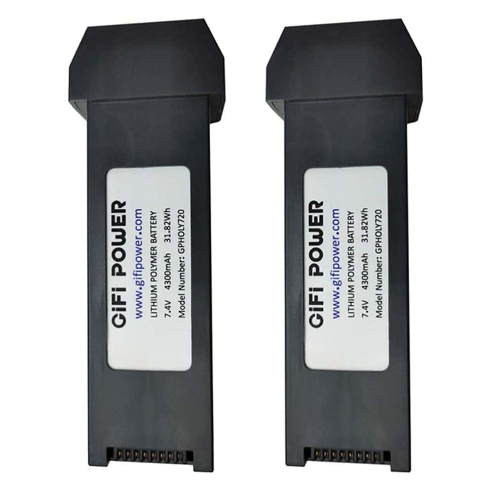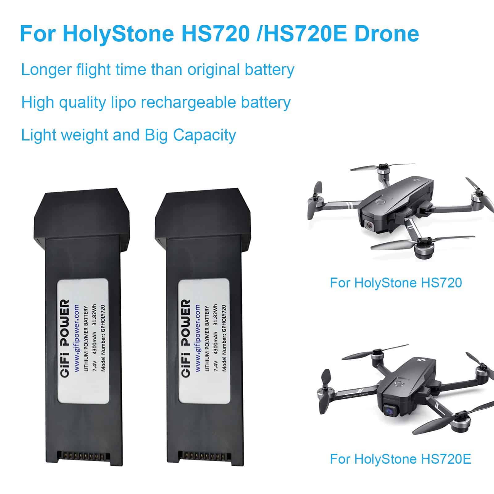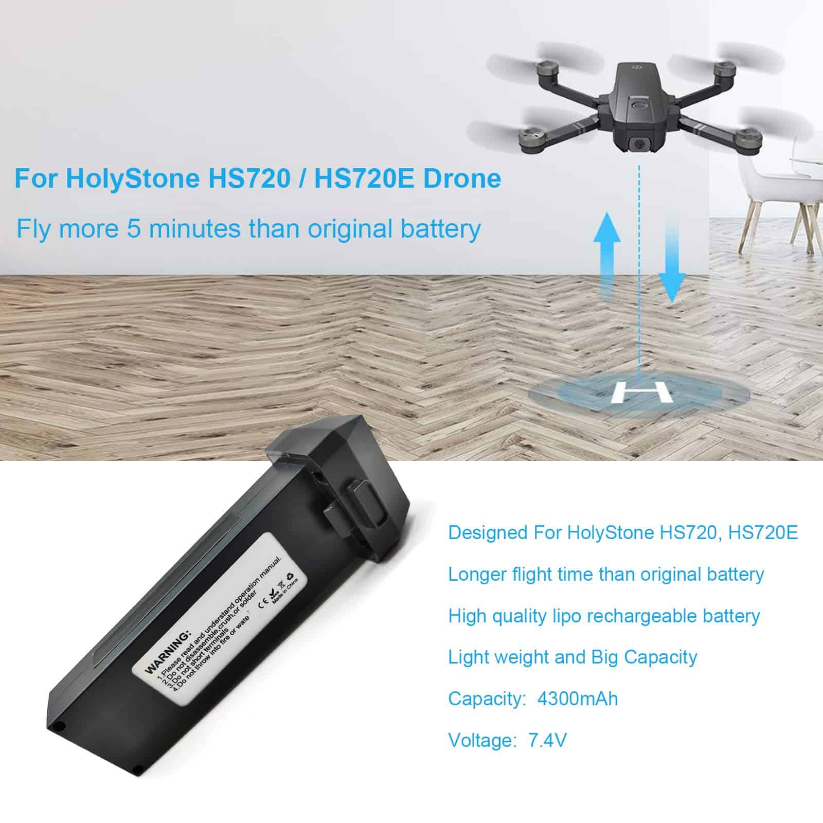 Batería de reemplazo Lipo de 4300mAh 7.4V diseñada para el HolyStone HS720, HS720E. 100% compatible con el drone HolyStone HS720, HS720E. Tiempo de vuelo más largo que la batería original. Vuele de 4 a 5 minutos más que la batería original. Protección de seguridad con batería Lipo recargable de alta calidad. Protección contra sobrecorriente y sobrecalentamiento. Carcasa hecha de material PC retardante de llama. Ligera y de gran capacidad con un tiempo de vuelo de hasta 30 minutos, dependiendo de las condiciones como el viento, actitud u otros factores adicionales. Incremente los tiempos de vuelo del drone sin agregar peso adicional, proporcionando tiempos de vuelo más largos que las baterías originales. La satisfacción del cliente es de suma importancia para nosotros. Si tiene alguna pregunta, contáctenos. Resolveremos su problema lo antes posible y también garantizamos una política de devolución fácil de 30 días.