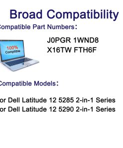 Acerca de SUNNEAR: SUNNEAR se enfoca en baterías de computadoras portátiles, Para cada uno de nuestros clientes con batería de computadora portátil de alta calidad, la satisfacción del cliente es nuestro objetivo eterno. Contamos con un Equipo profesional, Enfocamos en nuestro mayor y Valoramos a cada cliente. ¡Gracias por su compra! Especificación: Voltaje: 7.6V Capacidad: 42Wh/5250mAh Número de Parte Compatible: J0PGR 1WND8 X16TW FTH6F Ajuste para: (Use «Ctrl» + «F» para encontrar rápidamente sus modelos) No todos los modelos están listados, por favor verifique el número de parte de su batería original. Dell Latitude 12 5285 2 en 1 Serie Dell Latitude 12 5290 2 en 1 Serie Paquete Incluido : 1x batería J0PGR Garantía sin Preocupaciones: 12 meses de garantía En SUNNEAR, creemos en nuestra batería. Por eso los respaldamos a todos con una garantía de 12 meses y brindamos un servicio al cliente amigable y fácil de contactar. Para un Uso Óptimo de la Batería: Descargue la batería nueva al 5% (no 0%), luego cárguela y cicla 3-4 veces para despertar la nueva batería. El punto importante es realizar una carga de descarga completa cada dos meses para extender la vida útil de la batería. Cuando se utiliza el poder externo por mucho tiempo. Se recomienda quitar la batería para evitar afectar la vida útil de la batería. Evite golpes, desmontaje, caídas, calor o cortocircuitos artificial. Evite usar la batería en un entorno donde la temperatura sea demasiado alta o demasiado baja.
