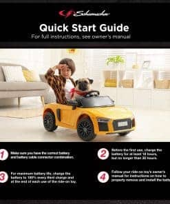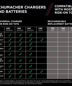 Los autos eléctricos de juguete son divertidos. Los niños conducirán estos vehículos en miniatura hasta que la batería se agote por completo. Pero no deje que la diversión termine con una batería agotada. En vez de eso, tenga a mano una batería cargada adicional para alargar el tiempo de juego. La batería recargable de repuesto Schumacher Charge ‘n Ride TB4 de 12V reanudará la diversión y pondrá a los jóvenes conductores de vuelta en la carretera. Y la instalación es facilísima, ya que un adulto puede instalar y conectar el TB4 en cuestión de segundos. El TB4 está diseñado para alimentar carros eléctricos de juguete Peg Perego de 12V. Esta batería de repuesto se puede recargar utilizando el cargador suministrado por Peg Perego. Sin embargo, para mejores resultados, utilice el cargador universal para autos de juguete eléctricos Schumacher CR6 de 3A 6V/12V.