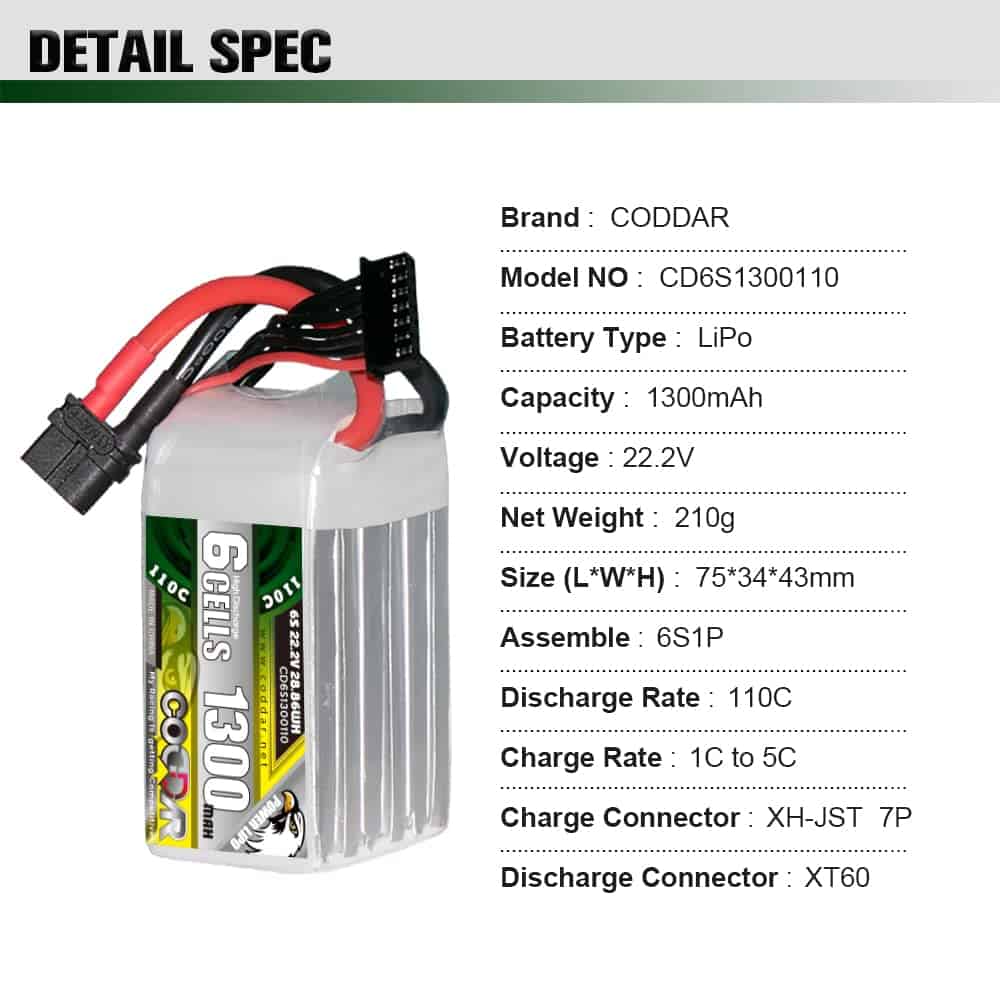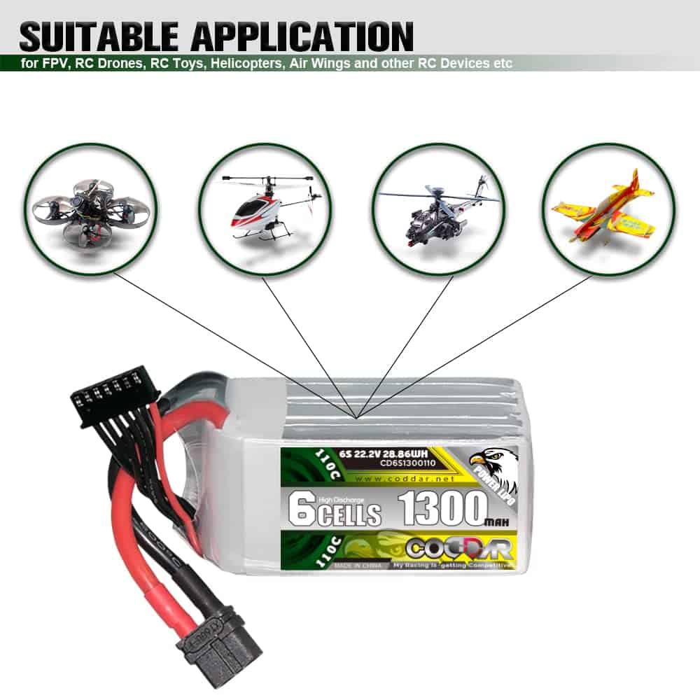 Es adecuado para FPV sin escobillas de tamaño 180 a 330mm, Drones de 5 pulgadas, Drones de 6 pulgadas, DJI FPV, Nazgul5, TITAN XL5, GEPRC MARK5 y MARK4, Crocodile5 Baby, Nazgul Evoque F6X/F6D, FPV de Carreras, FPV de Estilo Libre, Aviones, Cuadricópteros, Helicópteros, Drone de Estilo Libre MultiCóptero, UAV, Modelo Aéreo, Drone de Largo Alcance, DIY FPV, etc. Por favor, contáctenos si no está seguro de si la batería es adecuada para su dispositivo, le responderemos en un plazo de 24 horas hábiles.