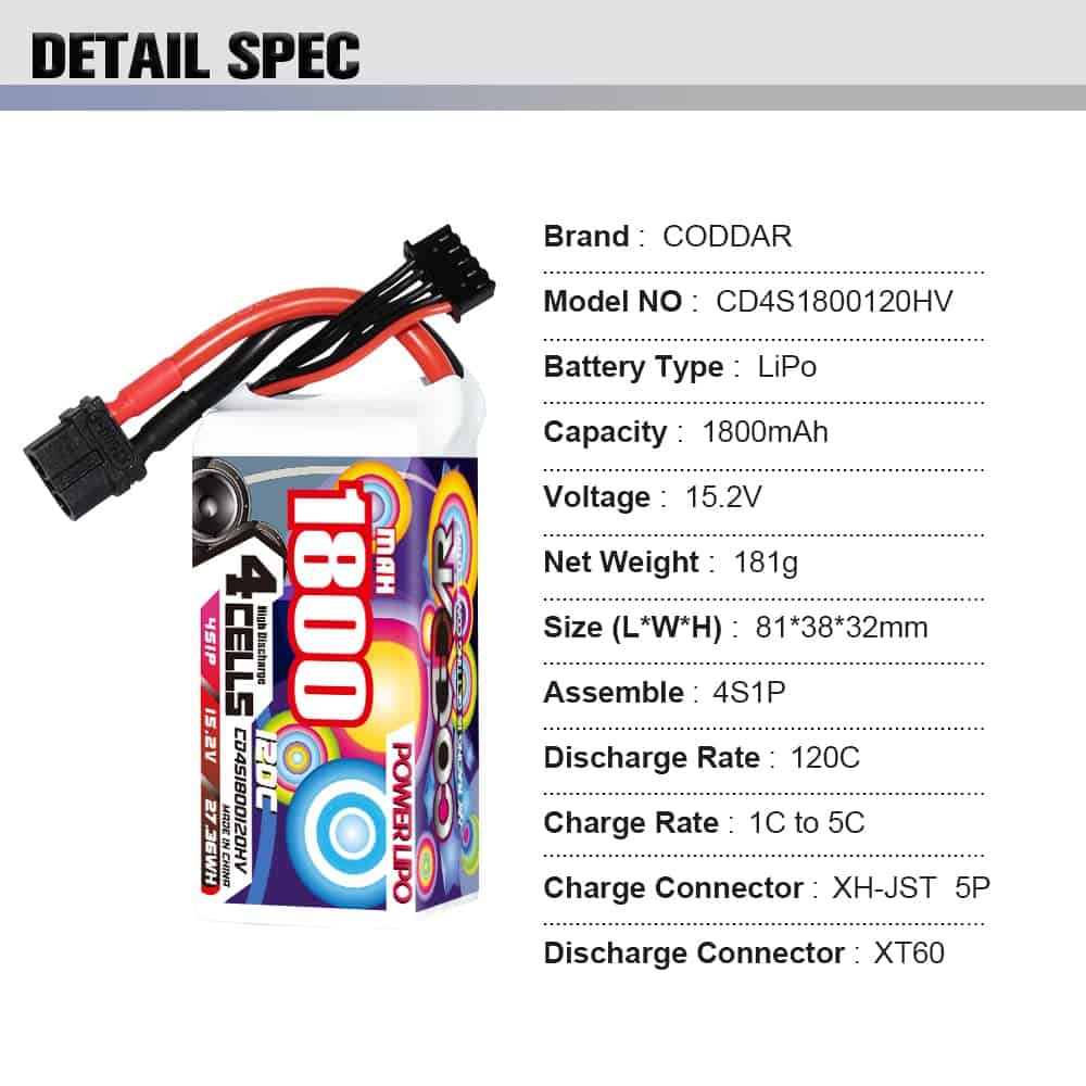 Voltaje Nominal: 15.2V (LiHV) (4S)