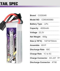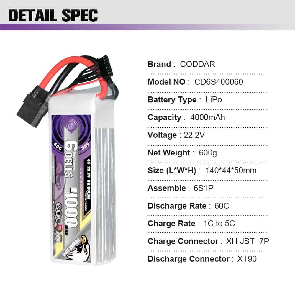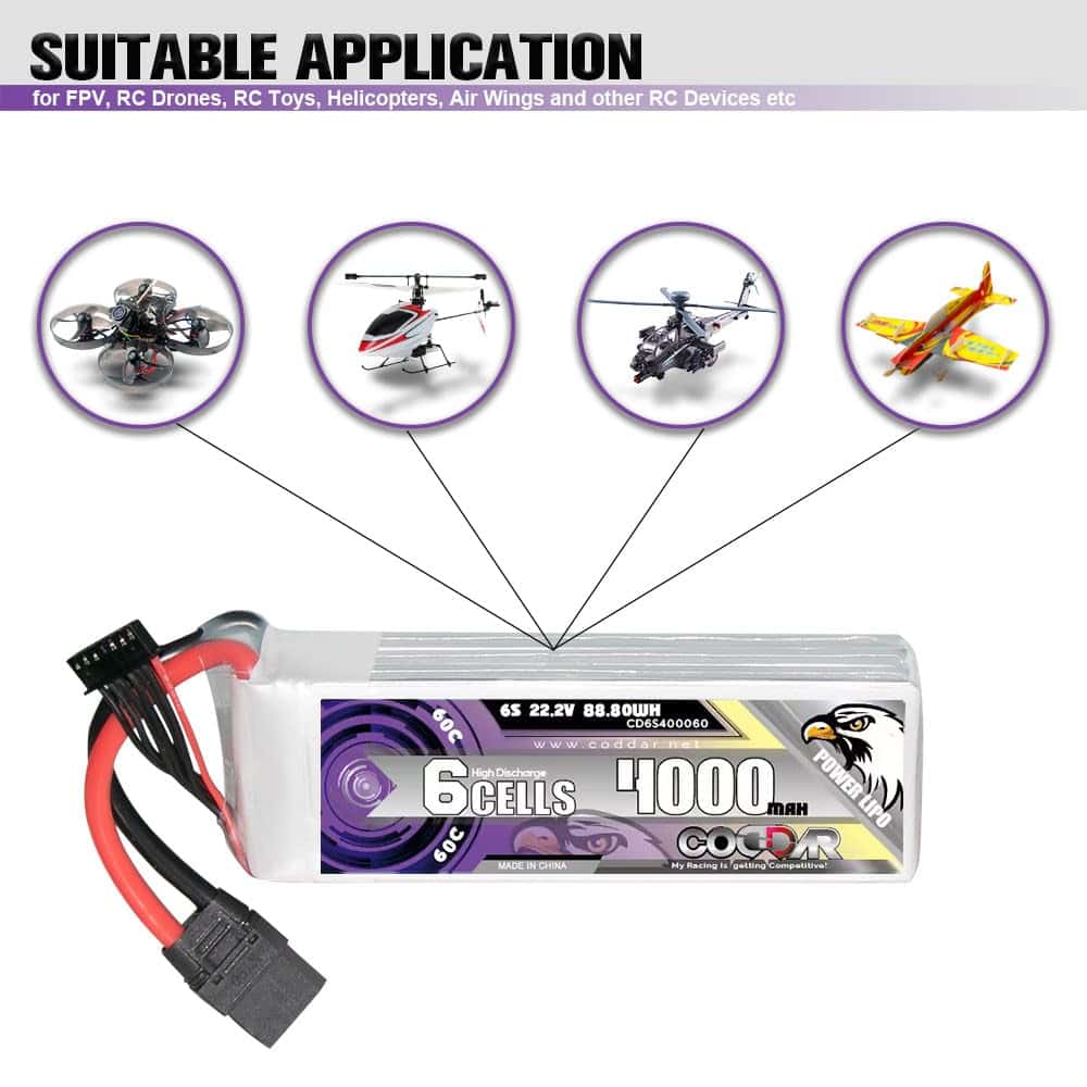 Es adecuada para Helicópteros de 600mm a 700mm, FPV de 7 pulgadas de 300mm a 380mm, FMS 70mm EDF Jets, Aviones 3D de 1400mm, Warbirds de 800mm, Align 600, T-Rex 600, Drones, Aviones RC, MultiCopteros, Barcos RC, Aficiones RC, etc.