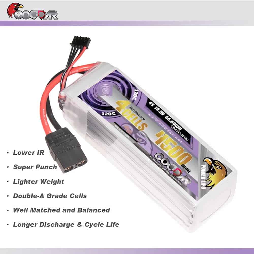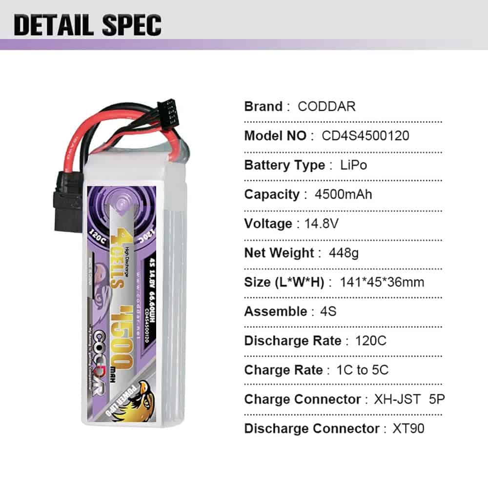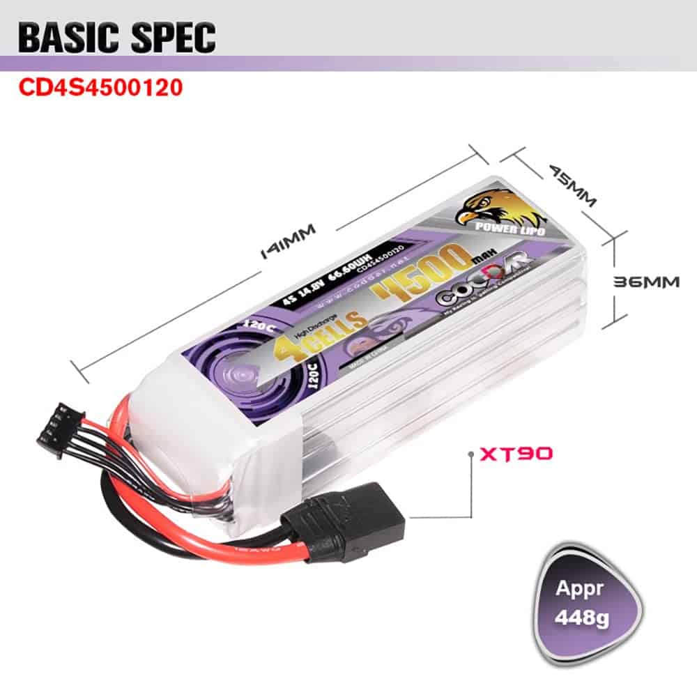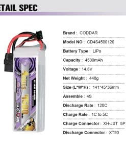 Batería LiPo CODDAR 4500mAh 4S 14.8V 120C con Conector XT90