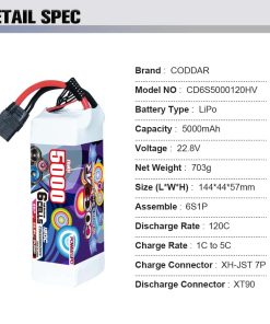 Voltaje Nominal: 22.8V (LiHV)(6S)