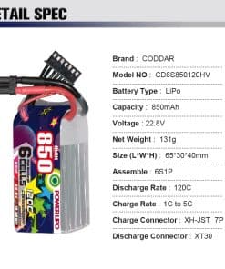 Voltaje Nominal: 22.8V (LiHV)(6S)