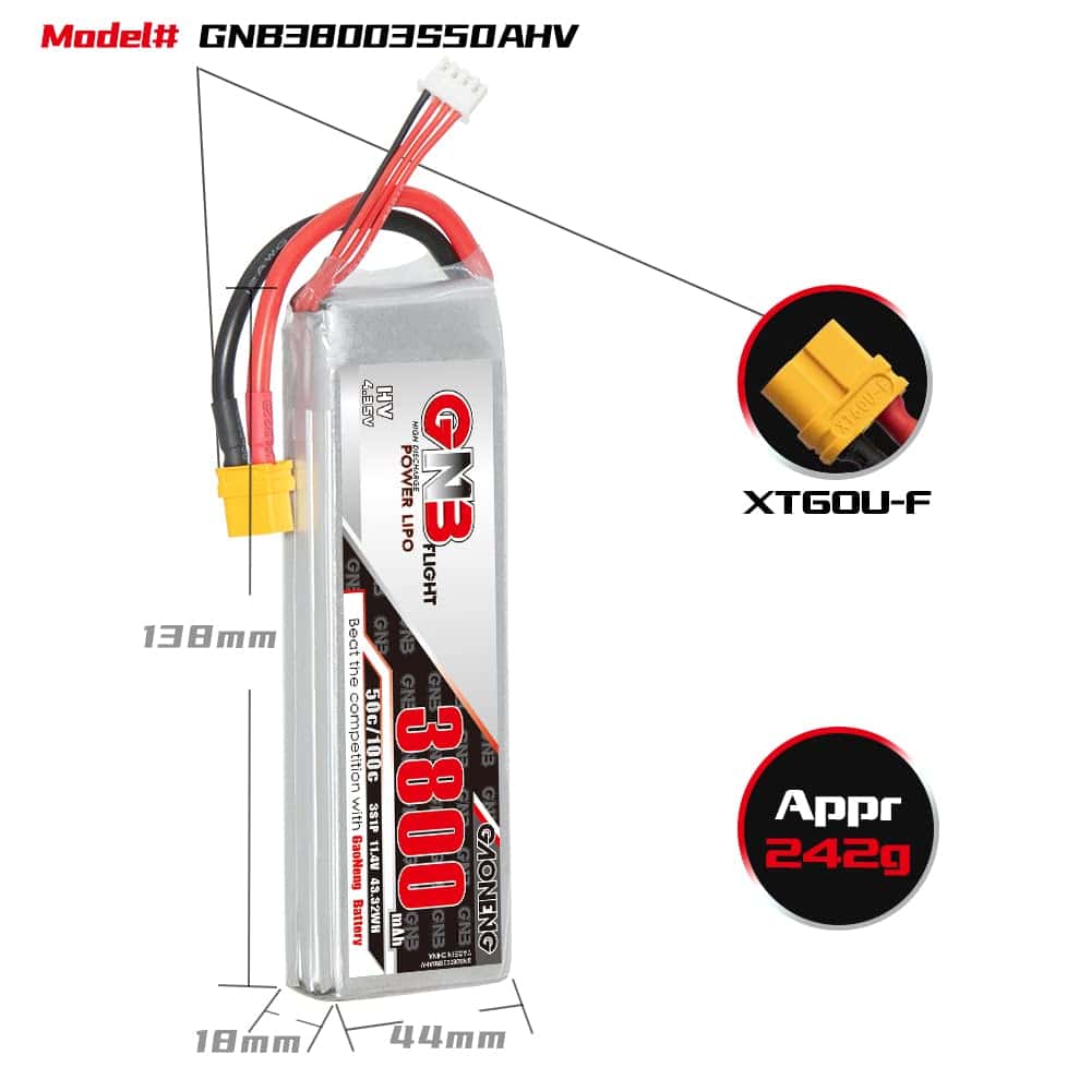 Batería LiPo de Alta Tensión GAONENG GNB 3S 11.4V 3800mAh
