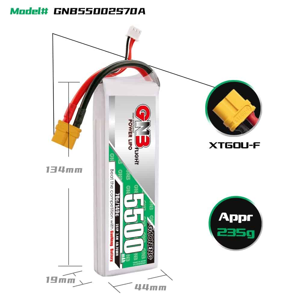 Batería LiPo GAONENG GNB 2S 5500mAh 7.4V 70C 140C XT60 para