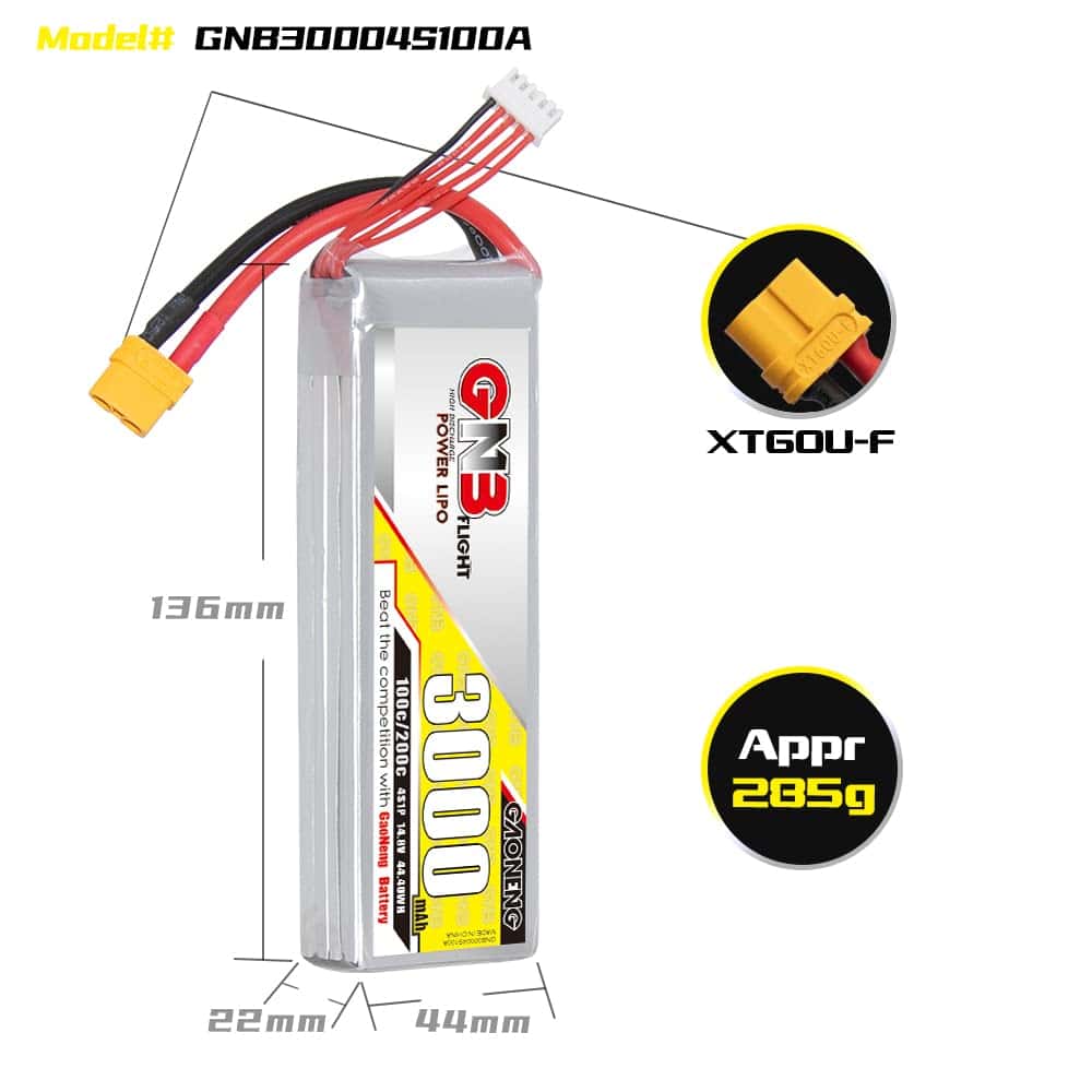 Batería LiPo GAONENG GNB 3000mAh 4S 14.8V 100C XT60 para