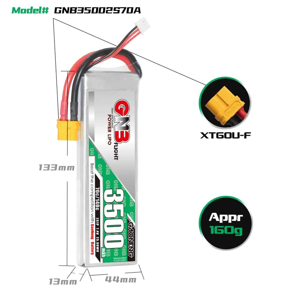 Batería LiPo GAONENG GNB 3500mAh 2S 7.4V 70C 140C con