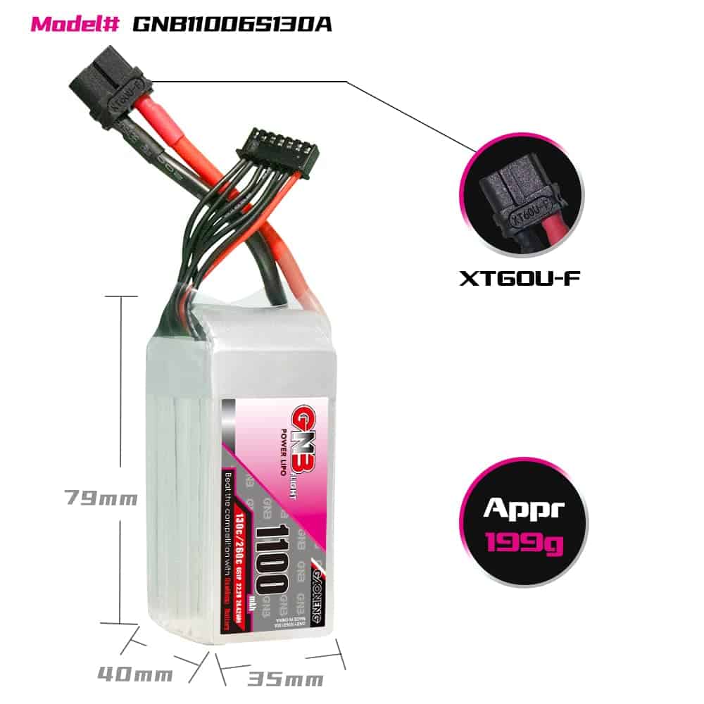 Batería LiPo GAONENG GNB 6S 1100mAh 22.2V XT60 130C para
